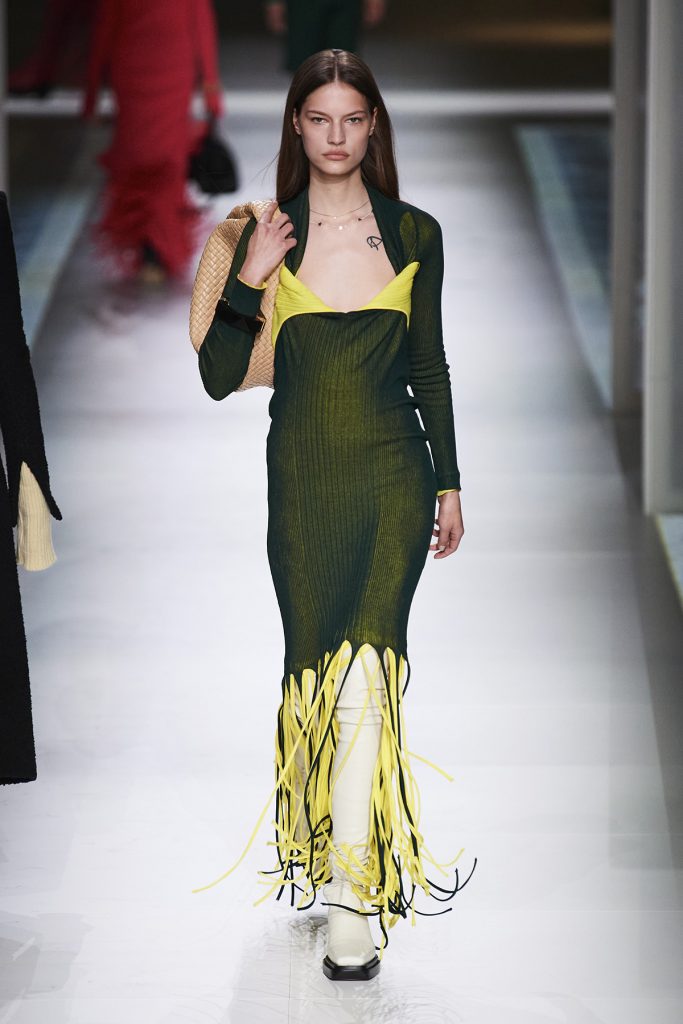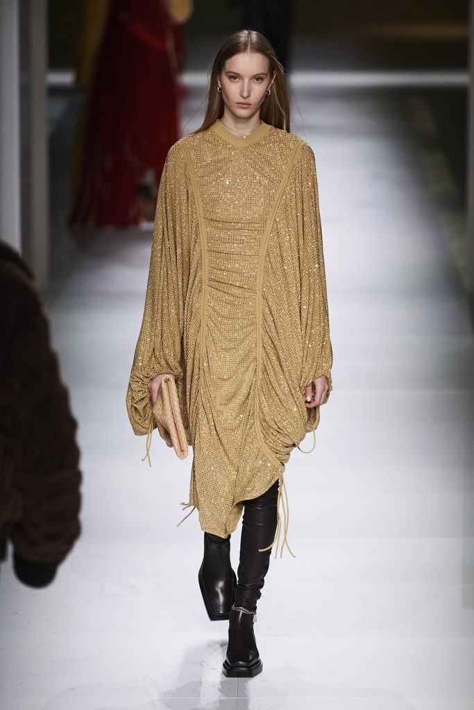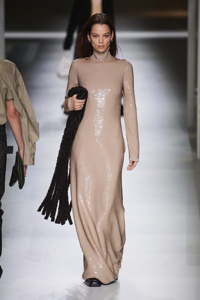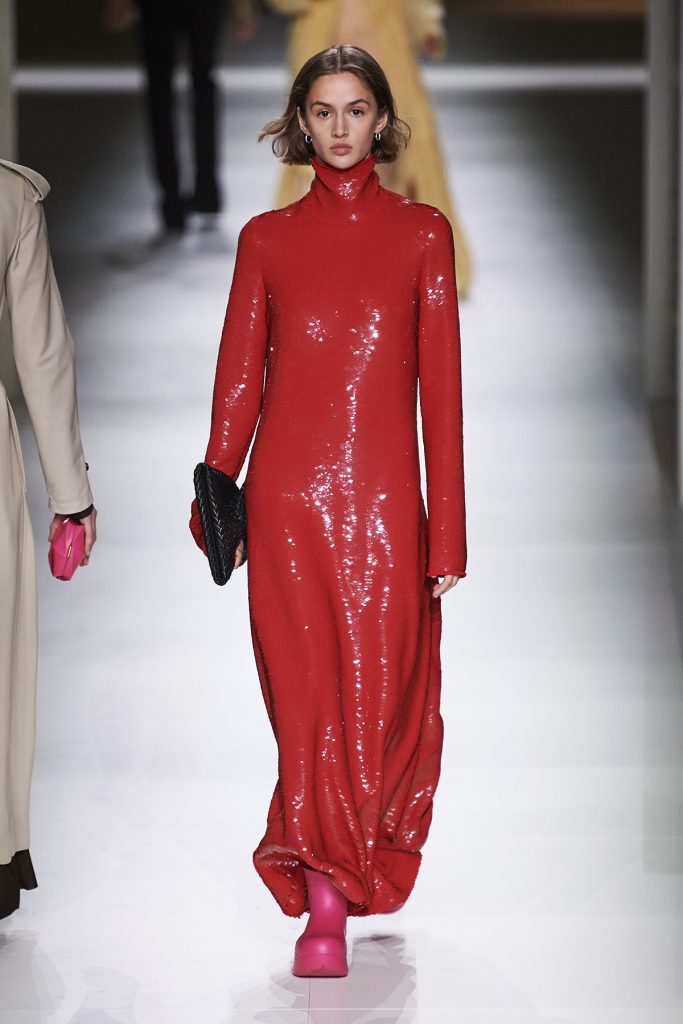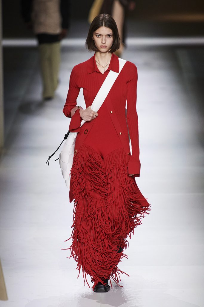 Η παρουσίαση της συλλογής του για το φθινόπωρο του 2020 θα ήταν λοιπόν η τέλεια στιγμή για τον Lee να καταπλήξει πραγματικά το πλήθος- ίσως με μια μουσική performance à la Tommy Hilfiger, ή μια πολύχρωμη εξτραβαγκάντζα όπως του Jeremy Scott για τον Μoschino. Αντ ‘αυτού, ο σχεδιαστής της Bottega Veneta άφησε τη μόδα να μιλήσει. Έδειξε τετραγωνισμένες μπότες και μίνιμαλ σύνολα εμπνευσμένα από την δεκαετία του ’90, αλλά και λαμπερά φορέματα με παγιέτες, δομημένα παλτά και τσάντες με πολύ μακριά κρόσσια.