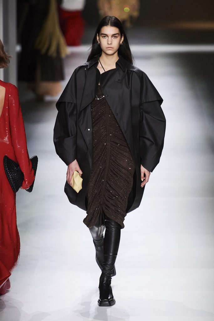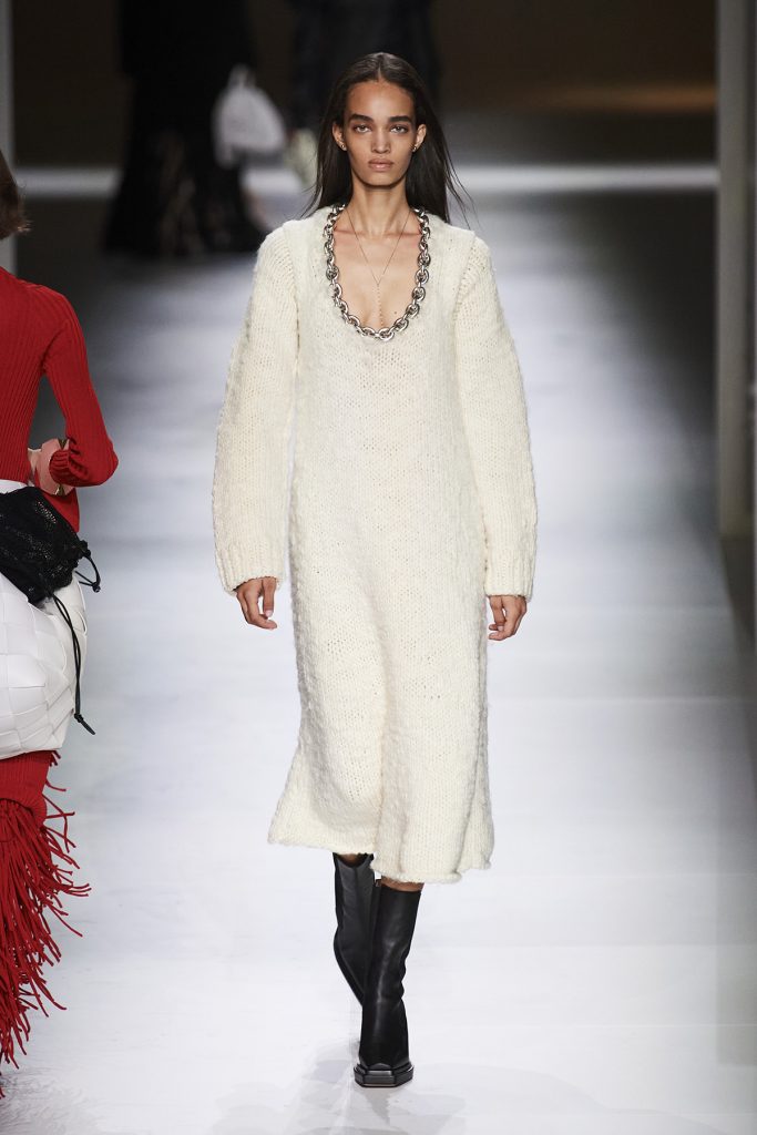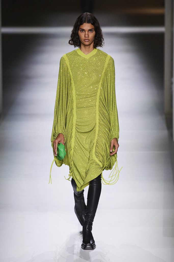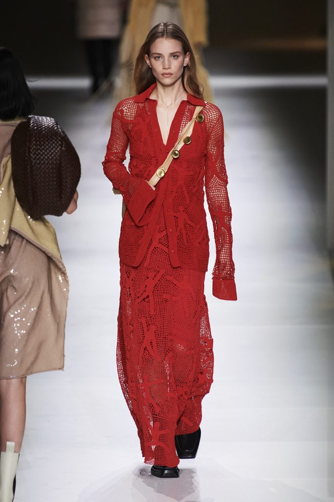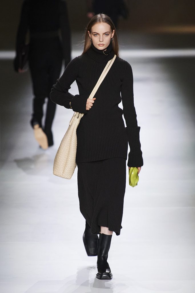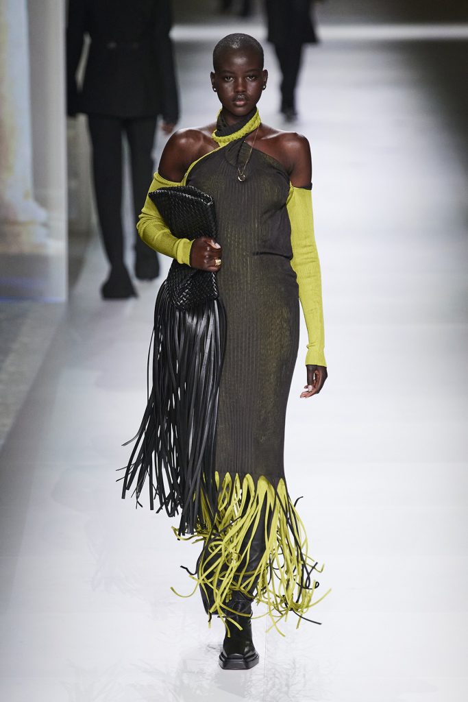 Η παρουσίαση της συλλογής του για το φθινόπωρο του 2020 θα ήταν λοιπόν η τέλεια στιγμή για τον Lee να καταπλήξει πραγματικά το πλήθος- ίσως με μια μουσική performance à la Tommy Hilfiger, ή μια πολύχρωμη εξτραβαγκάντζα όπως του Jeremy Scott για τον Μoschino. Αντ ‘αυτού, ο σχεδιαστής της Bottega Veneta άφησε τη μόδα να μιλήσει. Έδειξε τετραγωνισμένες μπότες και μίνιμαλ σύνολα εμπνευσμένα από την δεκαετία του ’90, αλλά και λαμπερά φορέματα με παγιέτες, δομημένα παλτά και τσάντες με πολύ μακριά κρόσσια.