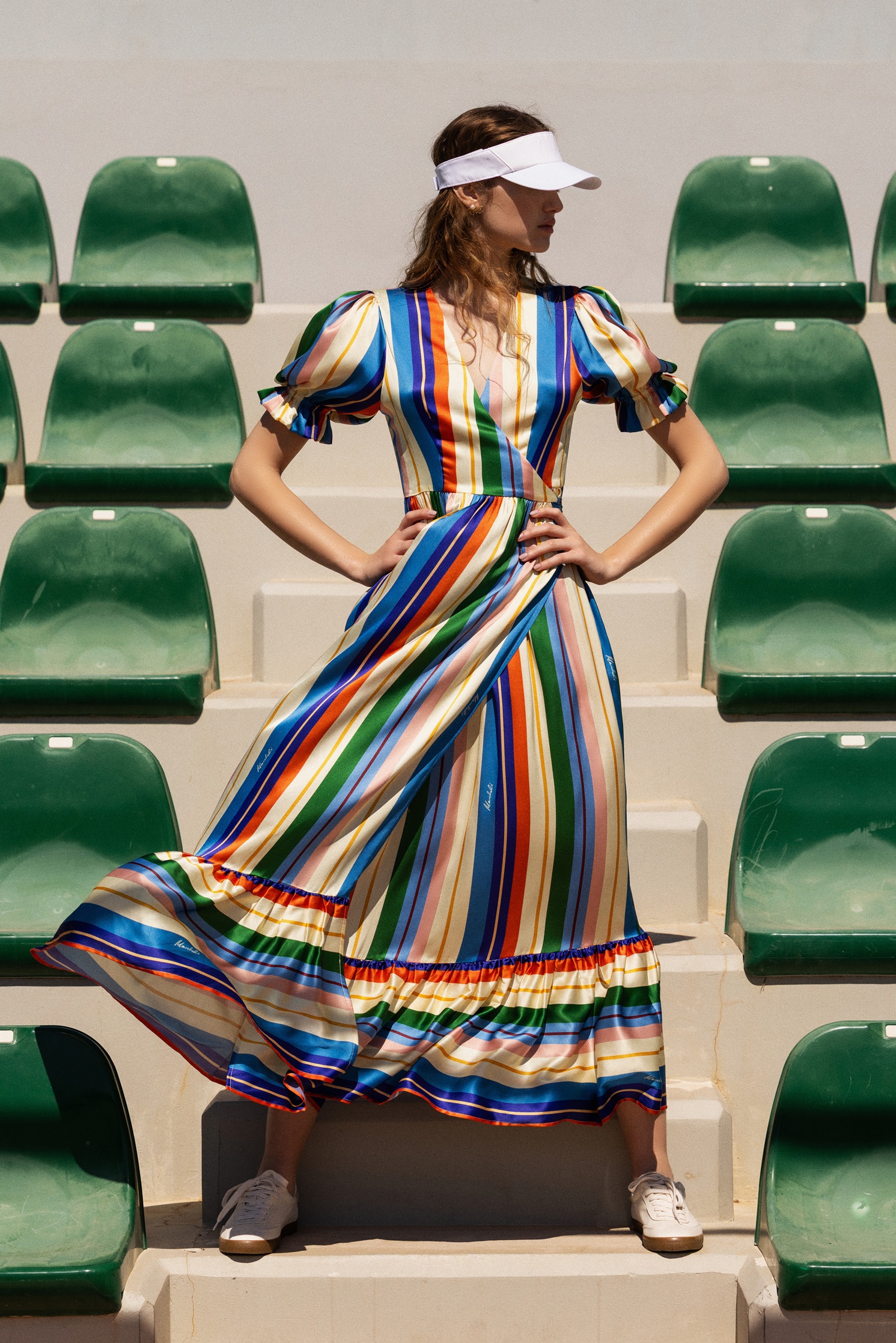 Η παλέτα κυμαίνεται σε φυσικούς τόνους εμπνευσμένους από την άμμο, τον ήλιο και τη θάλασσα, ενώ τα υλικά —λινό, μετάξι και βαμβάκι— συνθέτουν ένα παιχνίδι ανάμεσα στο ανάλαφρο και το εκλεπτυσμένο.