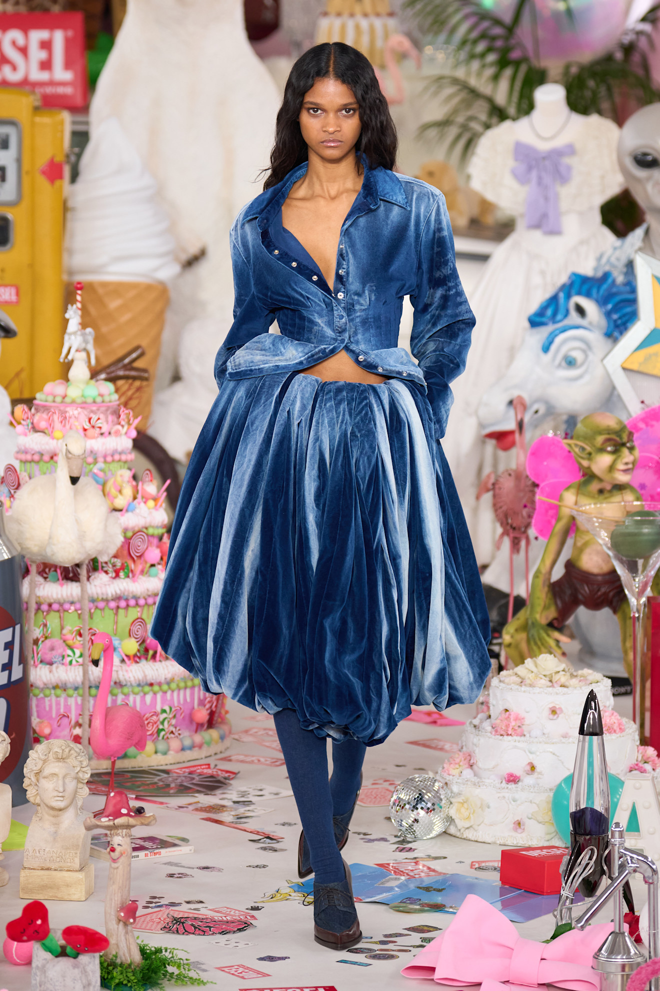 Η συλλογή Diesel Fall/Winter 2026 είναι μια ωδή στη στιγμή μετά το πάρτι: εκεί όπου όλα δείχνουν αυθεντικά. Υπό τη δημιουργική διεύθυνση του Glenn Martens, τα ρούχα μοιάζουν στριμμένα, τυλιγμένα, τσαλακωμένα επίτηδες σαν να φορέθηκαν όλη νύχτα και να συνεχίζουν ακάθεκτα την επόμενη μέρα. Το denim αποκτά μόνιμες πτυχώσεις, τα υφάσματα δείχνουν σαν να σηκώθηκαν από το πάτωμα, ενώ οι σιλουέτες παίζουν με το λάθος ως αισθητική πρόθεση.