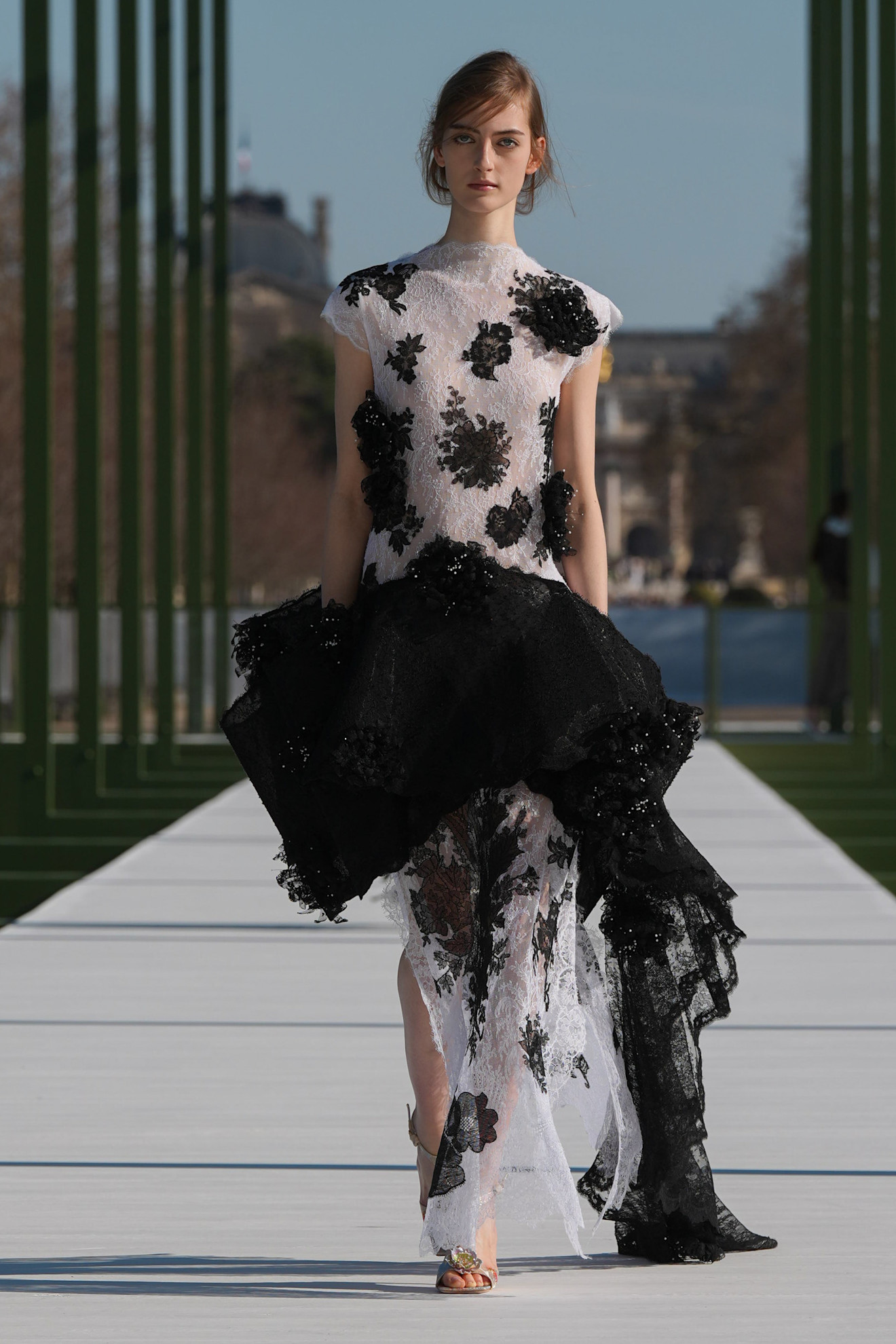 Από τον 17ο αιώνα, όταν οι Tuileries άνοιξαν στο κοινό, οι κήποι αυτοί δεν ήταν μόνο ένας τρόπος να βρεθεί κανείς μέσα στη φύση, στο κέντρο της πόλης, αλλά και ένας τόπος κοινωνικής παρουσίας: να δεις και να σε δουν, μια ιδέα που διαπερνά μέχρι σήμερα το τοπίο. Έτσι, για την επίδειξη της Τρίτης ένα θερμοκήπιο δίπλα στο σιντριβάνι των Tuileries περιτριγυρισμένο από νούφαρα λειτούργησε ως πασαρέλα, φέρνοντας μια νότα μόδας στο παριζιάνικο κοινό που έκανε τη βόλτα του εκεί κοντά.