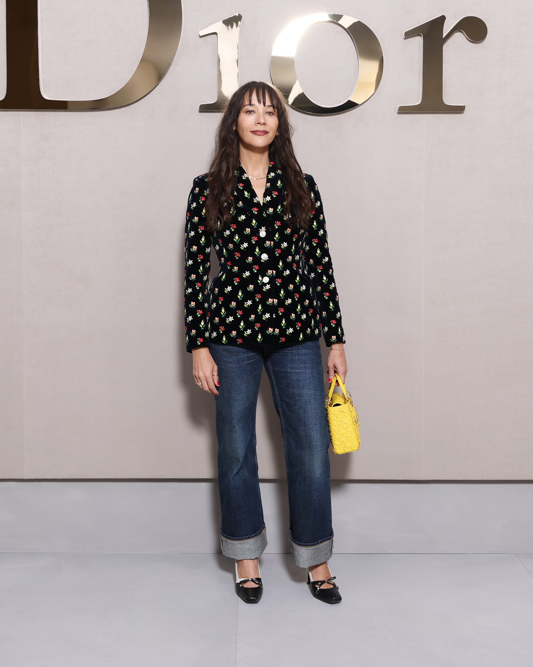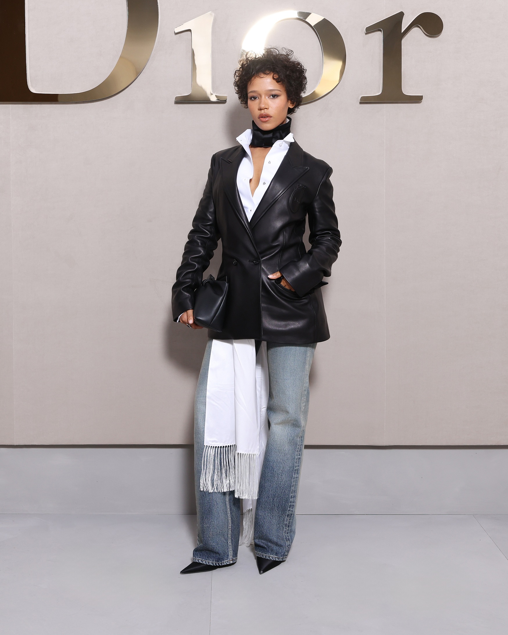 H Jenna Ortega, παρουσίασε την ένωση παρελθόντος και παρόντος φορώντας αμάνικο γιλέκο με στυλ ματαδόρ, κλασικός κώδικας Dior, συνδυασμένο με μίνι τζιν φούστα με ξέφτια.