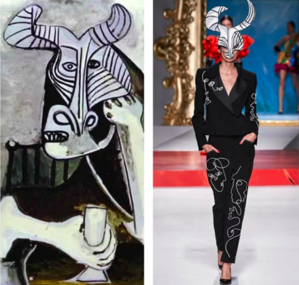 Ο κυβισμός, το καλλιτεχνικό κίνημα που σε μεγάλο βαθμό υπηρέτησε ο Pablo Picasso, βρήκε τη θέση του στην ανοιξιάτικη συλλογή Moschino το 2020. Με φόρμες που έμοιαζαν φλατ και δισδιάστατες αλλά και με σχέδια όπως ο Μινώταυρος που είχε ζωγραφίσει ο Picasso, το brand ανέδειξε μια καλλιτεχνική αισθητική φιλοσοφία εισαγάγοντάς την με άμεσο τρόπο στις ντουλάπες μας.