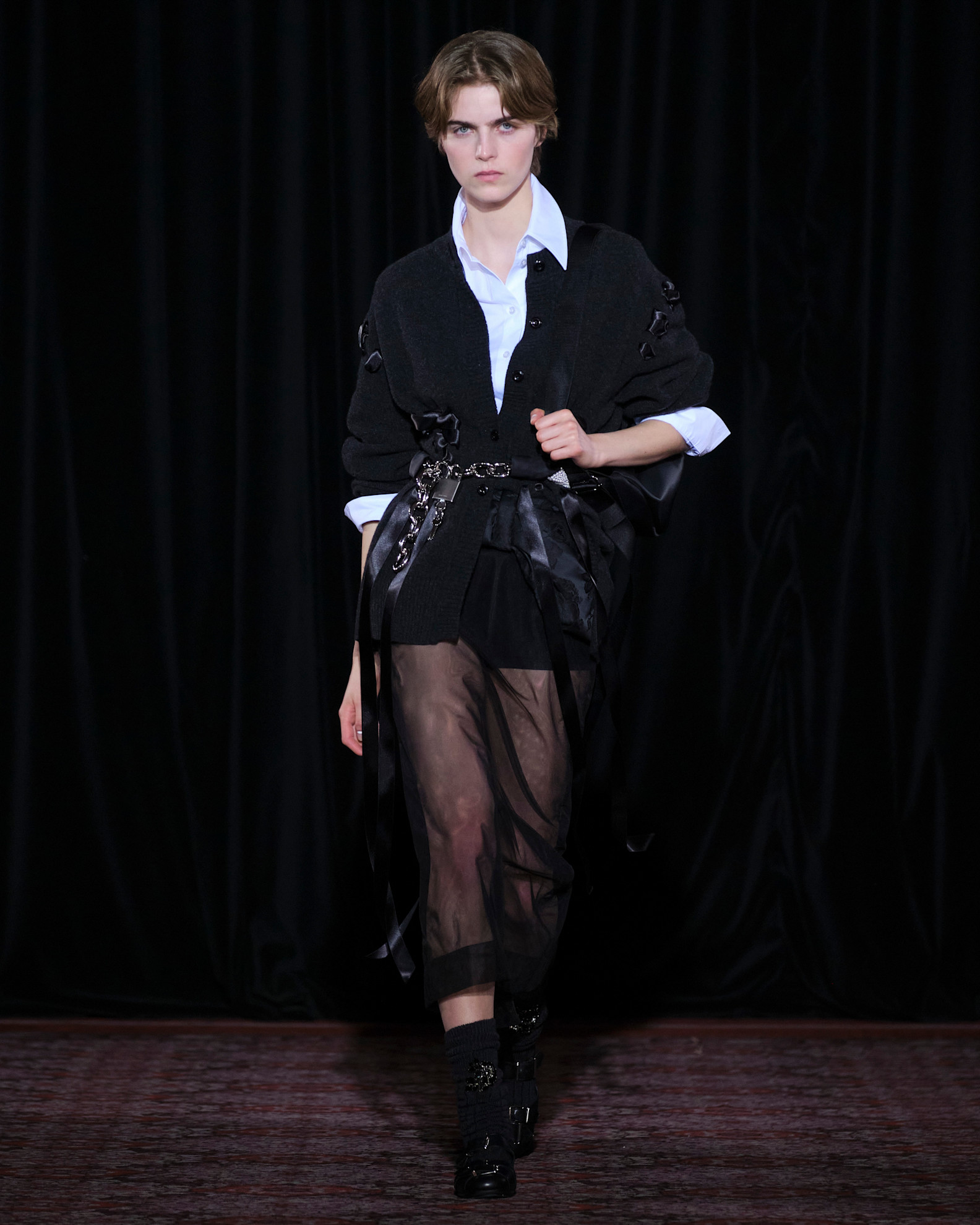 Στα παρασκήνια, μίλησε επίσης για τις σχολικές στολές, και τους χαρακτήρες που ανέλαβαν τα μοντέλα της: αυτούς της διευθύντριας, τη δασκάλας, των κοριτσιών, των αγοριών. Μεταξύ του all-star lineup ήταν η Alexa Chung, η Bel Powley, η Fiona Shaw, η Andrea Riseborough, η Minha Kim και ο Fionn O’Shea.