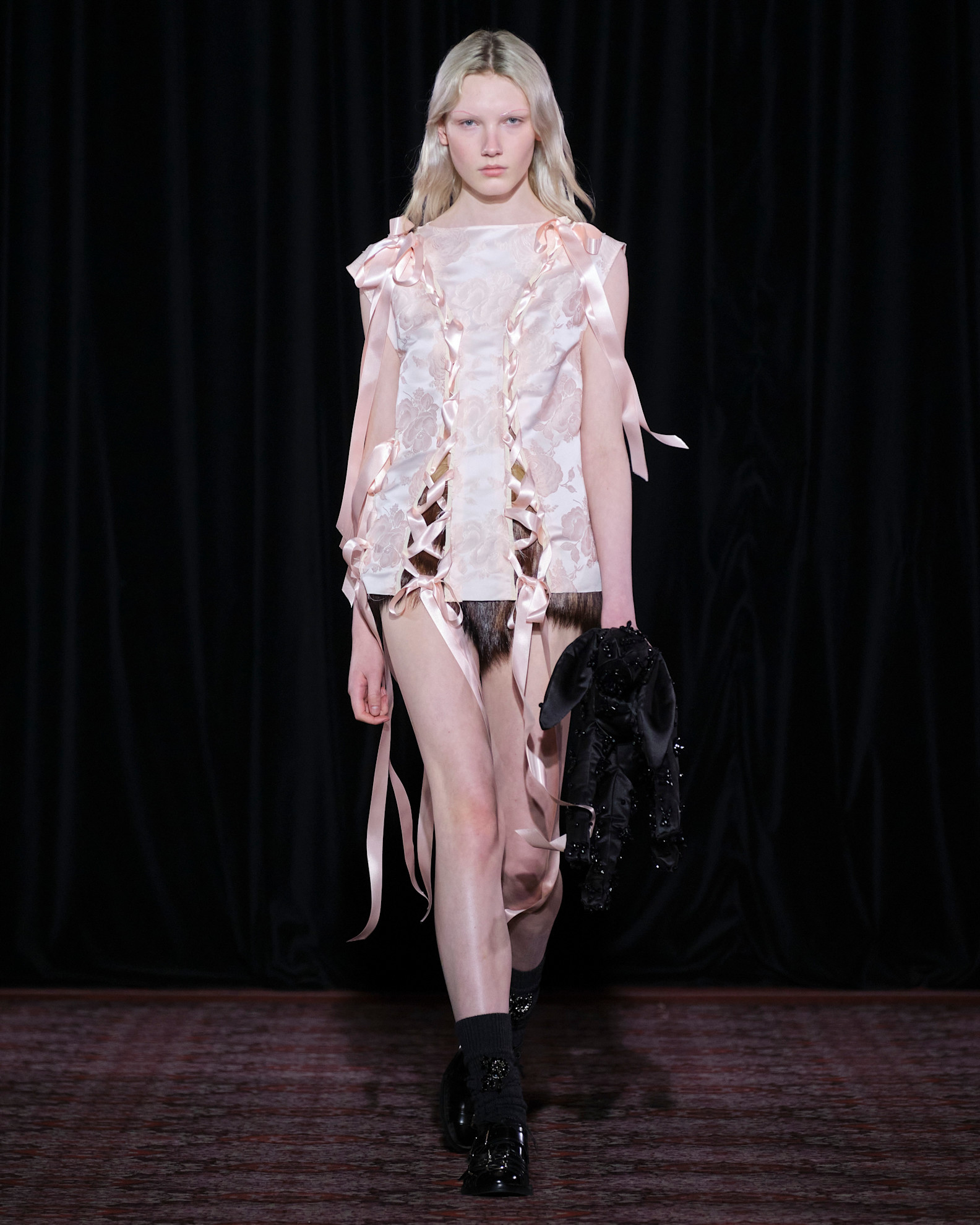 Αλλά οι πραγματικοί πρωταγωνιστές του σόου; Η σειρά από κουνέλια – ή λαγοί αν θέλουμε να είμαστε πιο ακριβείς, που σε κάποιες περιπτώσεις αντικατέστησαν τις τσάντες, ακουμπούσαν πάνω στους ώμους σαν γούνινες ετόλ και τυλίγονταν γύρω από το λαιμό σαν κασκόλ.