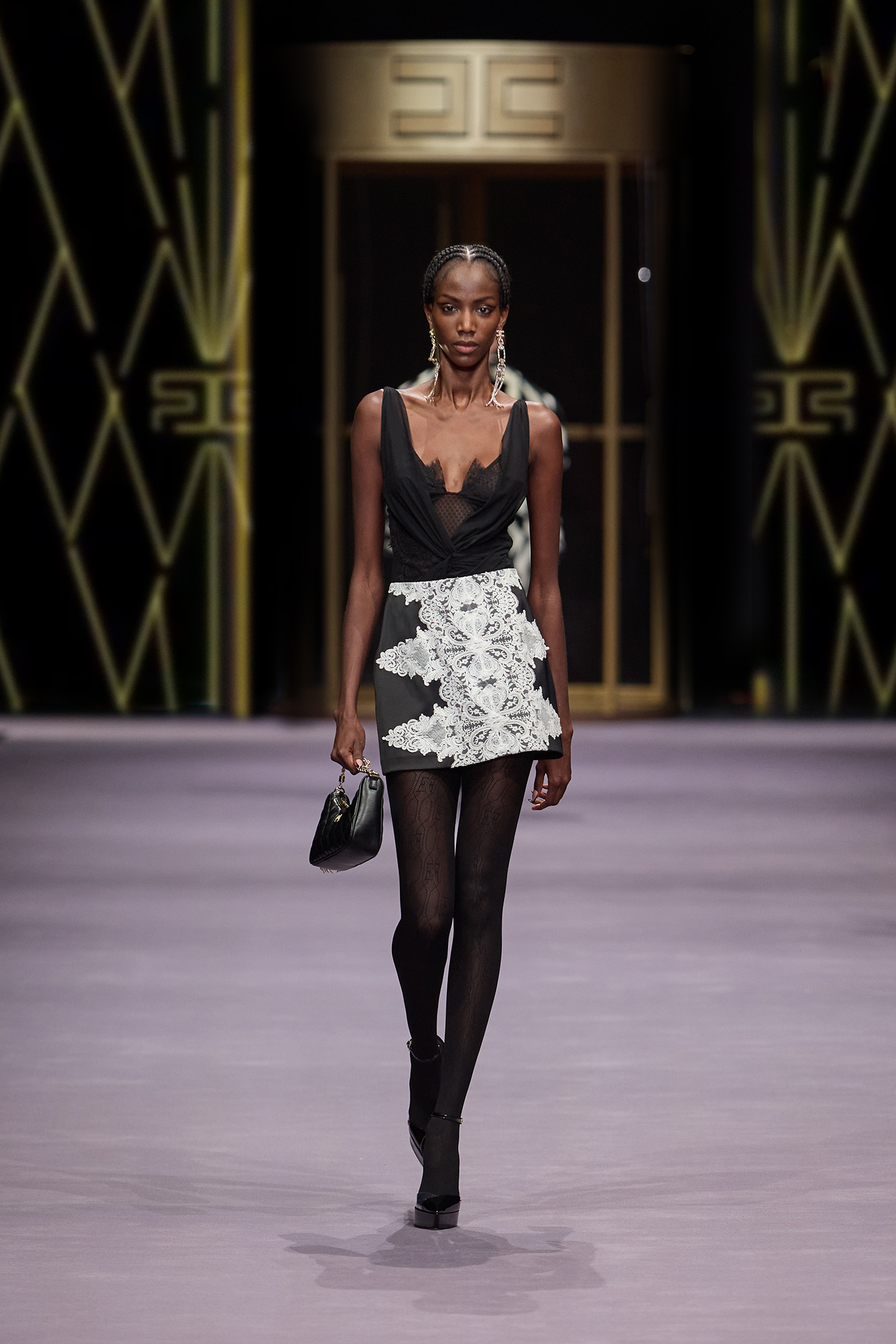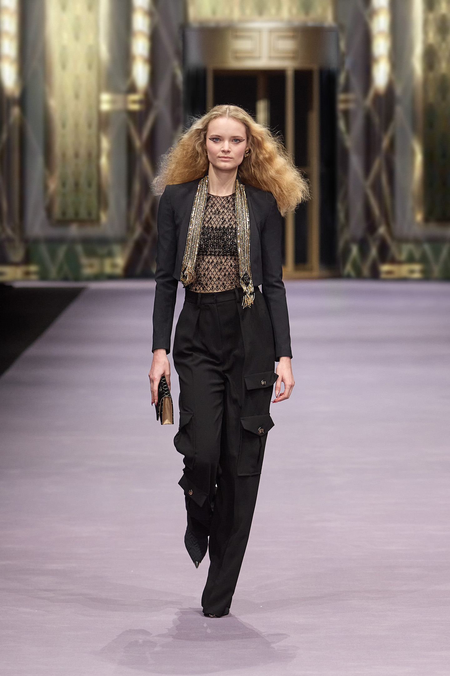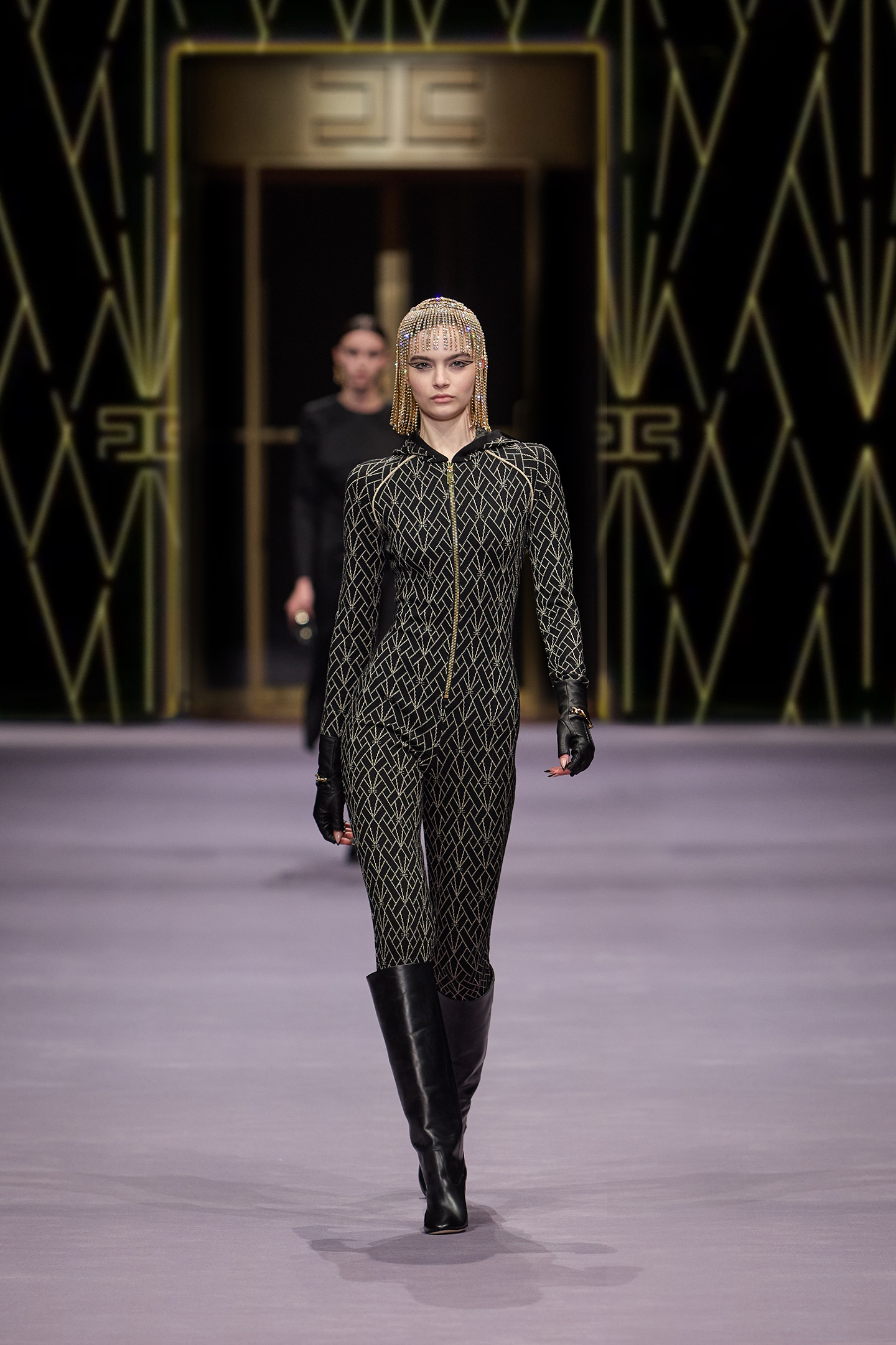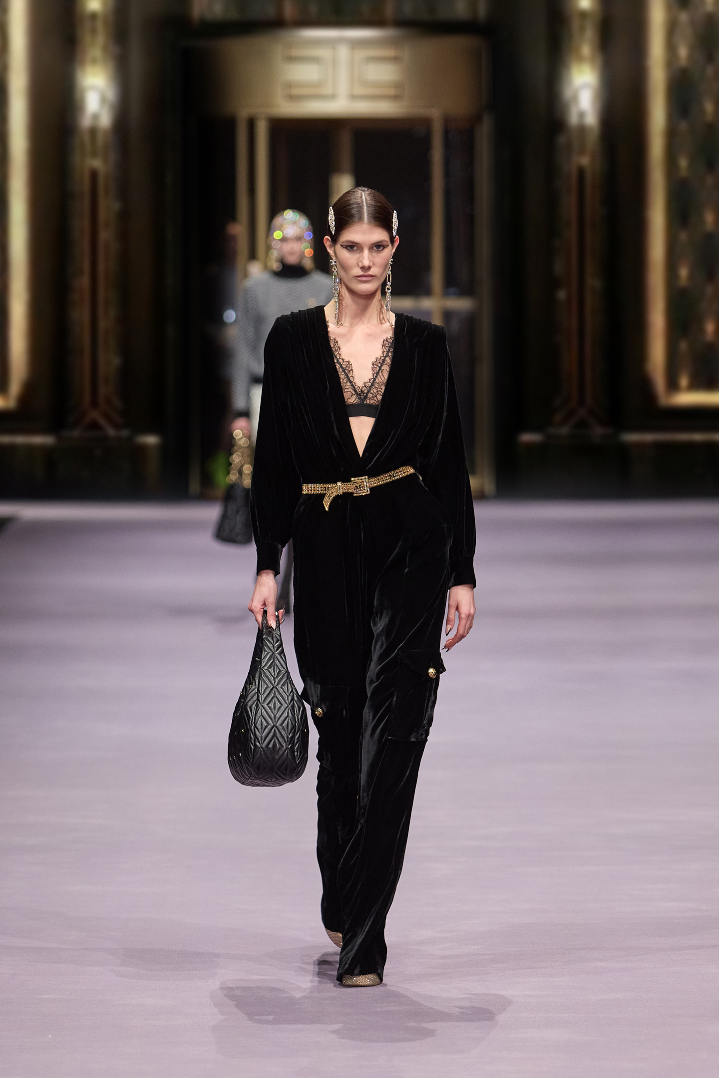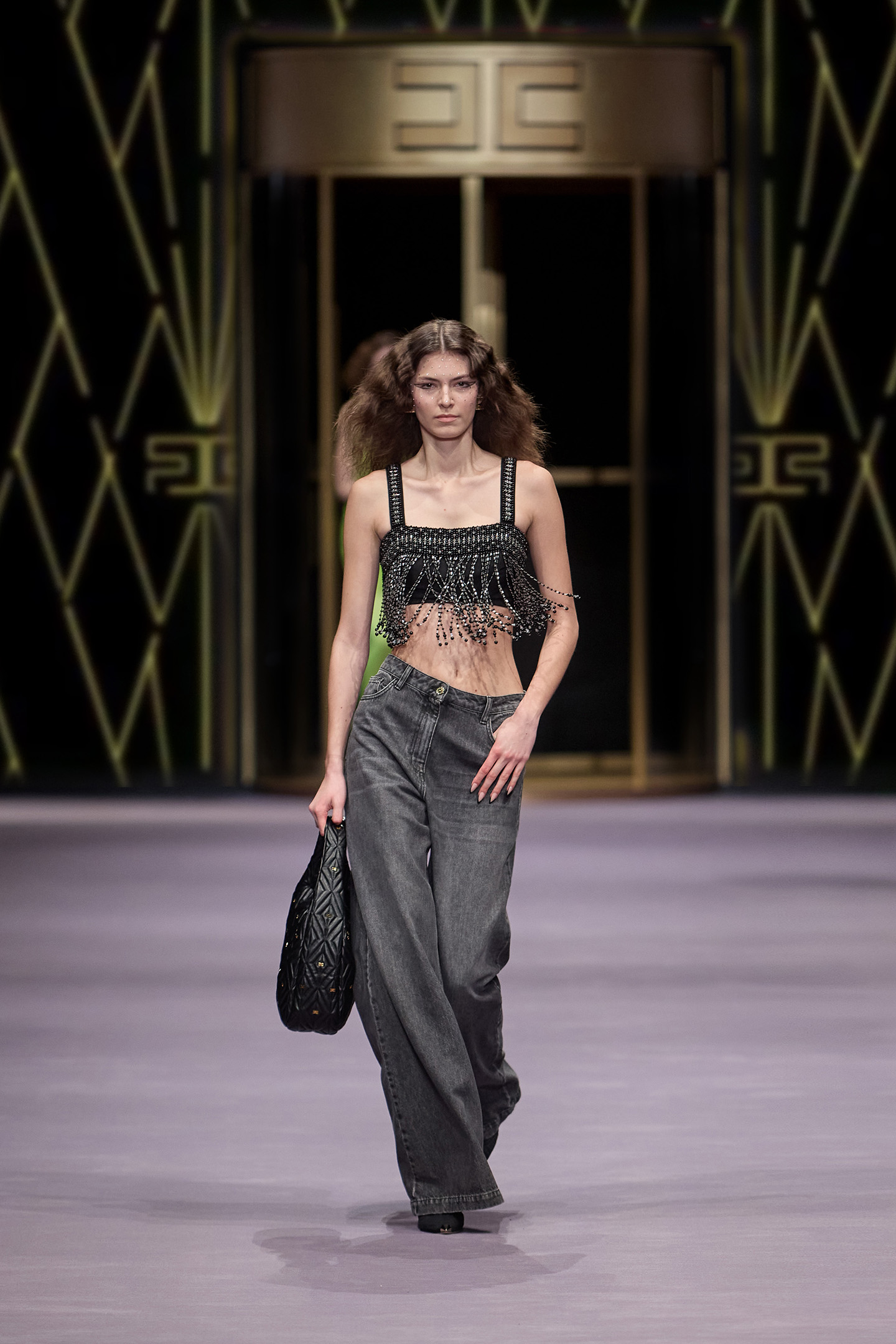 Η γυναίκα της Elisabetta Franchi είναι και πάλι εν κινήσει και, για τη συλλογή Φθινόπωρο-Χειμώνας 2023, ξεκινά μια περιπέτεια στο χρόνο και στο χώρο, για να καταλήξει στην αμερικανική περίοδο Art Deco, έτοιμη να ξεφύγει από τα παλιά μοτίβα και πειραματιστεί με νέα. Μια ελεύθερη στοχαστής, ανοιχτή στο σύγχρονο, παραδίδεται στην ελκυστική γοητεία των πρώτων γυναικών αεροπόρων. Έτσι, η λαμπερή αισθητική της Red Carpet συλλογής τονίζεται από υπερμεγέθη cargo ντένιμ παντελόνια, συνδυασμένα με κομψά, κεντητά τοπ. Η γκαρνταρόμπα της είναι ένας ισορροπημένος συνδυασμός καλτ κομματιών με τάση για παλτό φορέματα, μπλέιζερ και αεροπορικά τζάκετ που μεταδίδουν αυτοπεποίθηση στάση και ελεύθερη νοοτροπία, έχοντας αποστασιοποιηθεί από τις συμβάσεις του παρελθόντος.
