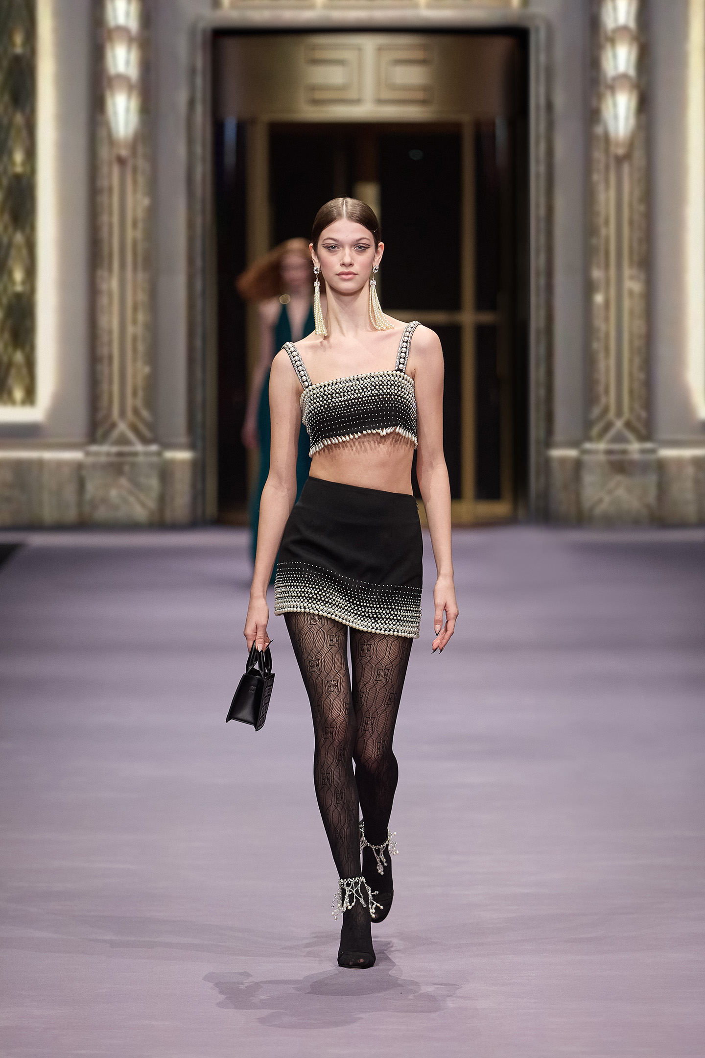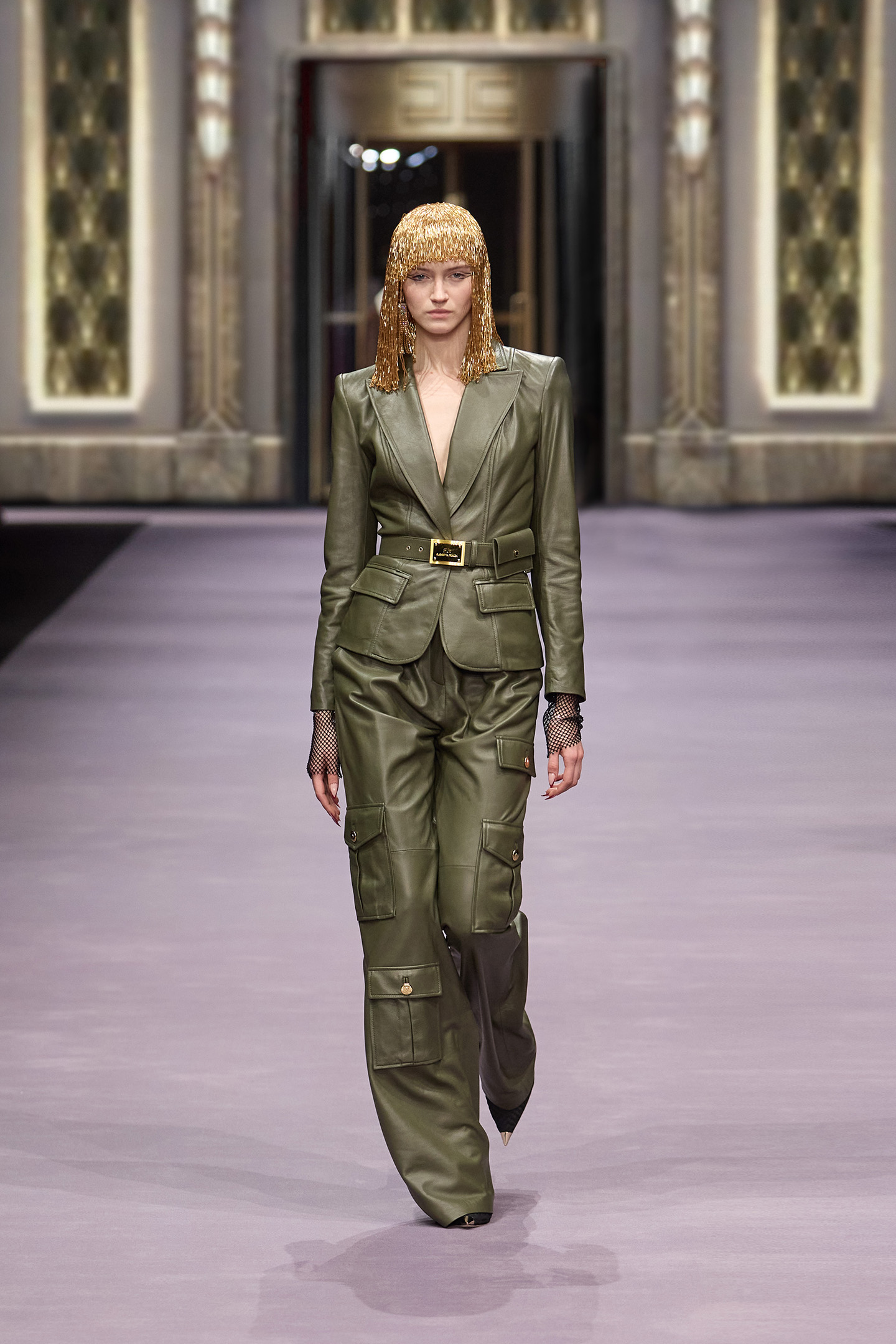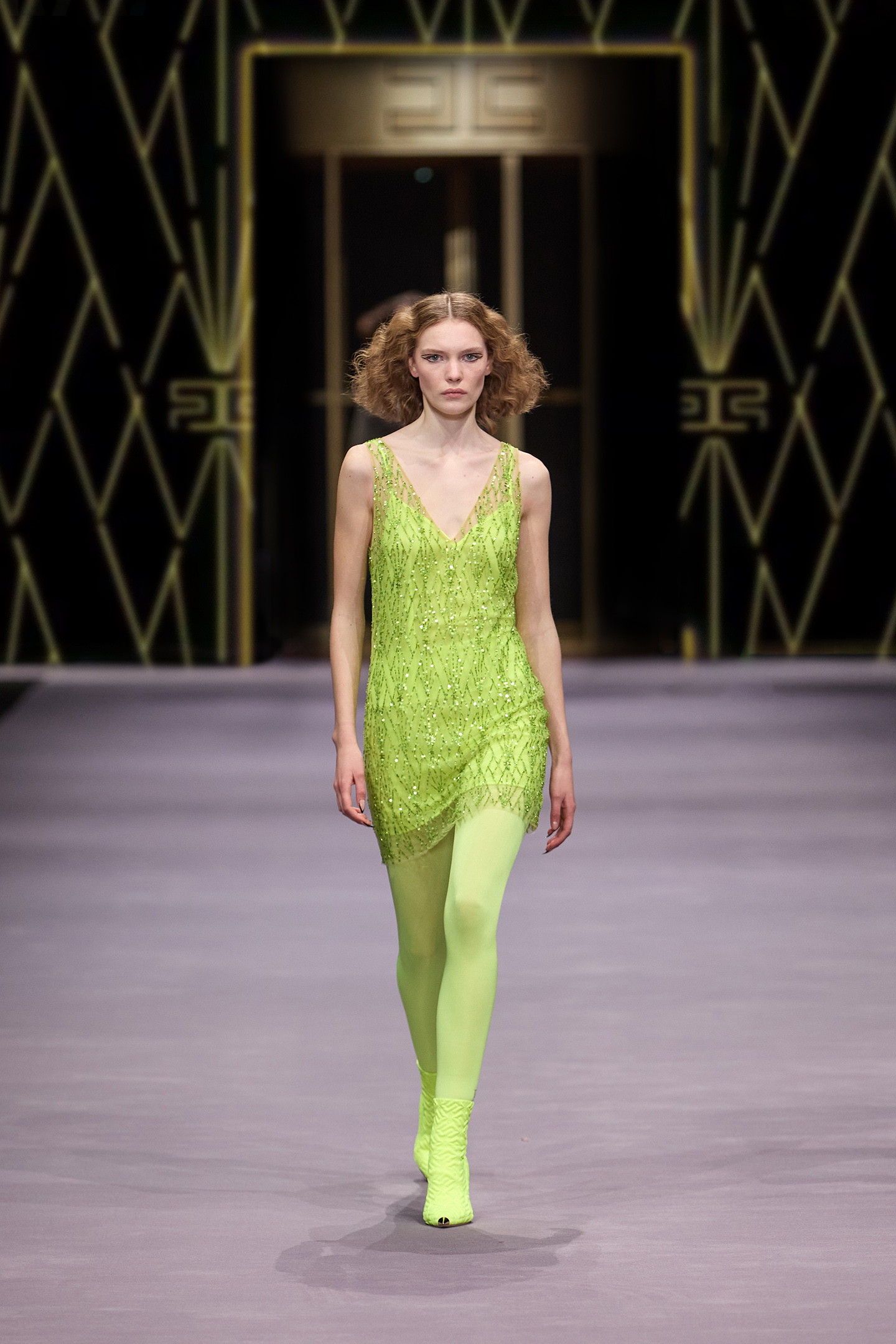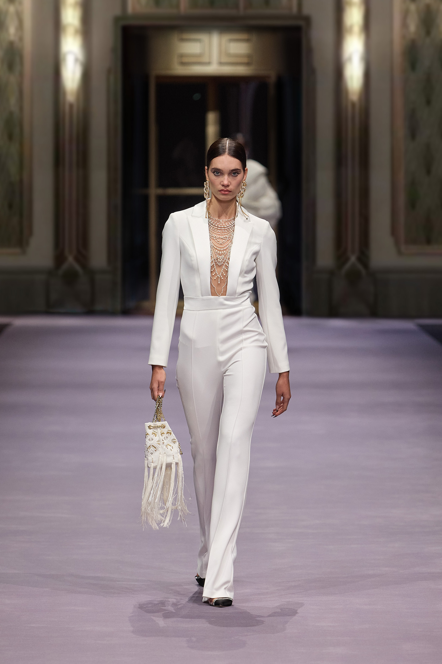 Η γυναίκα της Elisabetta Franchi είναι και πάλι εν κινήσει και, για τη συλλογή Φθινόπωρο-Χειμώνας 2023, ξεκινά μια περιπέτεια στο χρόνο και στο χώρο, για να καταλήξει στην αμερικανική περίοδο Art Deco, έτοιμη να ξεφύγει από τα παλιά μοτίβα και πειραματιστεί με νέα. Μια ελεύθερη στοχαστής, ανοιχτή στο σύγχρονο, παραδίδεται στην ελκυστική γοητεία των πρώτων γυναικών αεροπόρων. Έτσι, η λαμπερή αισθητική της Red Carpet συλλογής τονίζεται από υπερμεγέθη cargo ντένιμ παντελόνια, συνδυασμένα με κομψά, κεντητά τοπ. Η γκαρνταρόμπα της είναι ένας ισορροπημένος συνδυασμός καλτ κομματιών με τάση για παλτό φορέματα, μπλέιζερ και αεροπορικά τζάκετ που μεταδίδουν αυτοπεποίθηση στάση και ελεύθερη νοοτροπία, έχοντας αποστασιοποιηθεί από τις συμβάσεις του παρελθόντος.