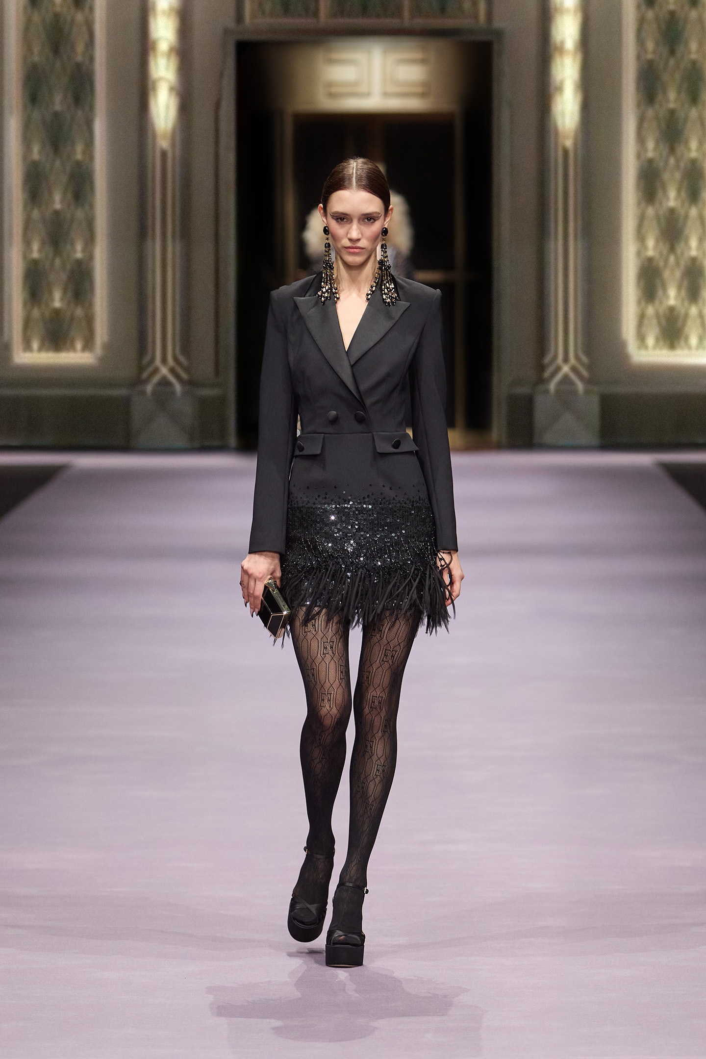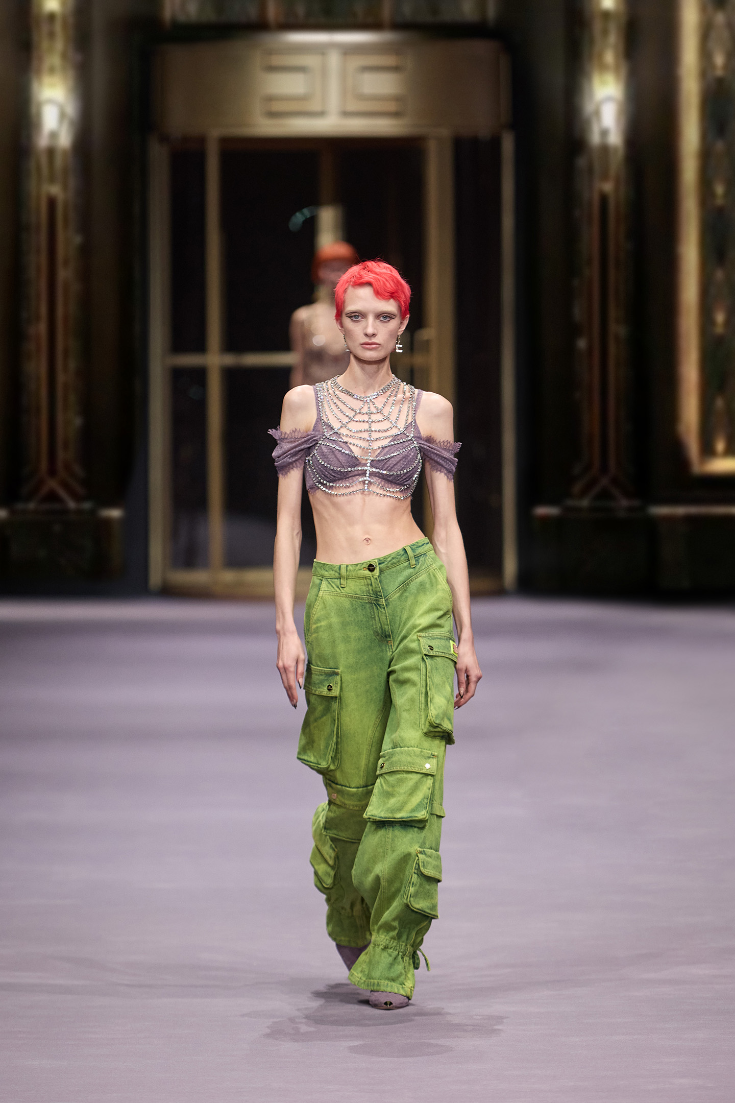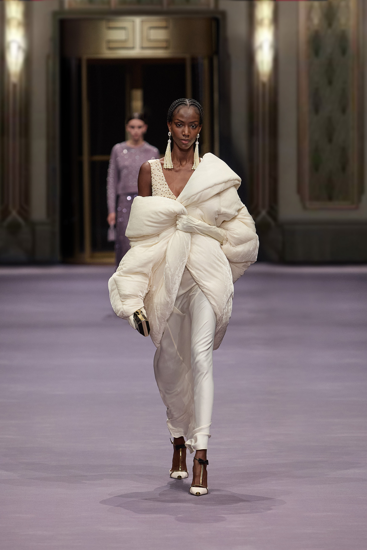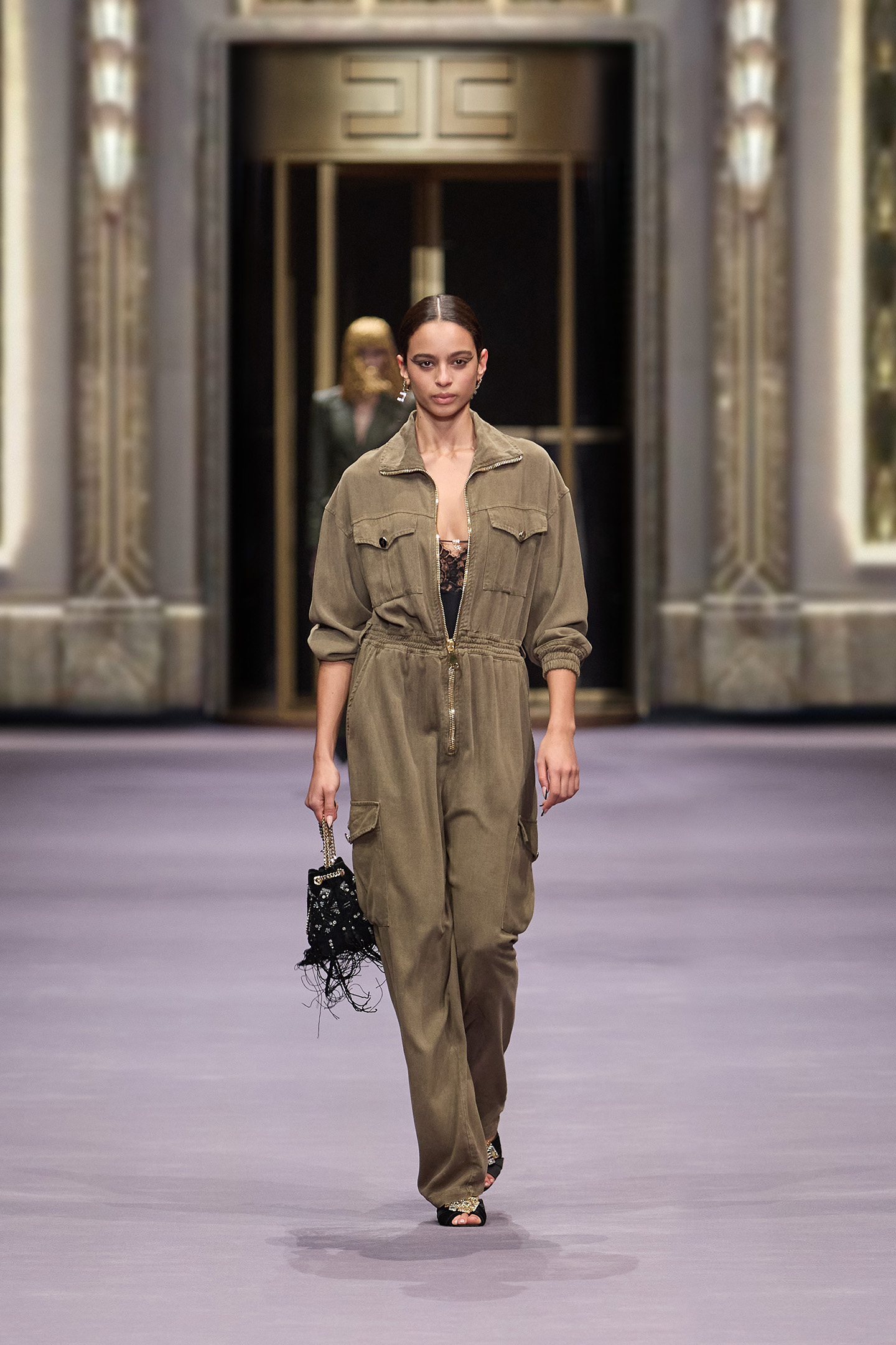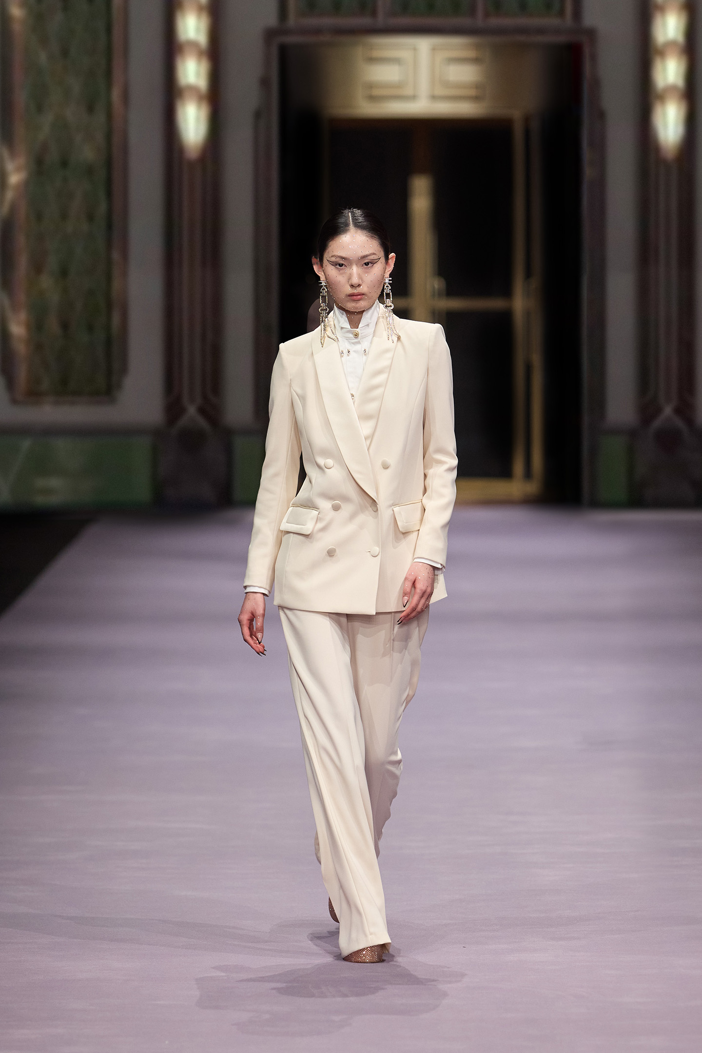 Η γυναίκα της Elisabetta Franchi είναι και πάλι εν κινήσει και, για τη συλλογή Φθινόπωρο-Χειμώνας 2023, ξεκινά μια περιπέτεια στο χρόνο και στο χώρο, για να καταλήξει στην αμερικανική περίοδο Art Deco, έτοιμη να ξεφύγει από τα παλιά μοτίβα και πειραματιστεί με νέα. Μια ελεύθερη στοχαστής, ανοιχτή στο σύγχρονο, παραδίδεται στην ελκυστική γοητεία των πρώτων γυναικών αεροπόρων. Έτσι, η λαμπερή αισθητική της Red Carpet συλλογής τονίζεται από υπερμεγέθη cargo ντένιμ παντελόνια, συνδυασμένα με κομψά, κεντητά τοπ. Η γκαρνταρόμπα της είναι ένας ισορροπημένος συνδυασμός καλτ κομματιών με τάση για παλτό φορέματα, μπλέιζερ και αεροπορικά τζάκετ που μεταδίδουν αυτοπεποίθηση στάση και ελεύθερη νοοτροπία, έχοντας αποστασιοποιηθεί από τις συμβάσεις του παρελθόντος.
