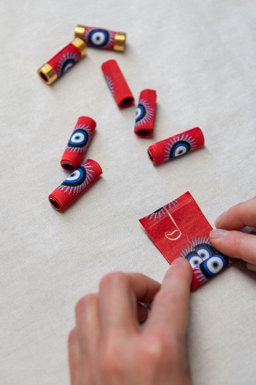 «H συμμετοχή μου στο project αφορούσε τη δημιουργία υφασμάτινων χαντρών που θα κοσμούσαν όλες τις τσάντες της κολεξιόν, τη δημιουργία ενός βραχιολιού που ήταν και το μοναδικό κόσμημα της κολεξιόν, ένα βραχιόλι για τον αστράγαλο που θα τοποθετούταν στο δέσιμο μίας γόβας με το όνομα Konstantinella κι ένα μικρό διάκοσμο που τοποθετήθηκε σε ένα όμορφο πασούμι με την ονομασία Konstantimule. Τα δύο τελευταία σχέδια, επειδή ήταν εξ ολοκλήρου χειροποίητα και πολύ απαιτητικά στην παραγωγή, ο οίκος τα παρουσίασε ως limited edition με τη σχετική αρίθμηση στο εσωτερικό του παπουτσιού».