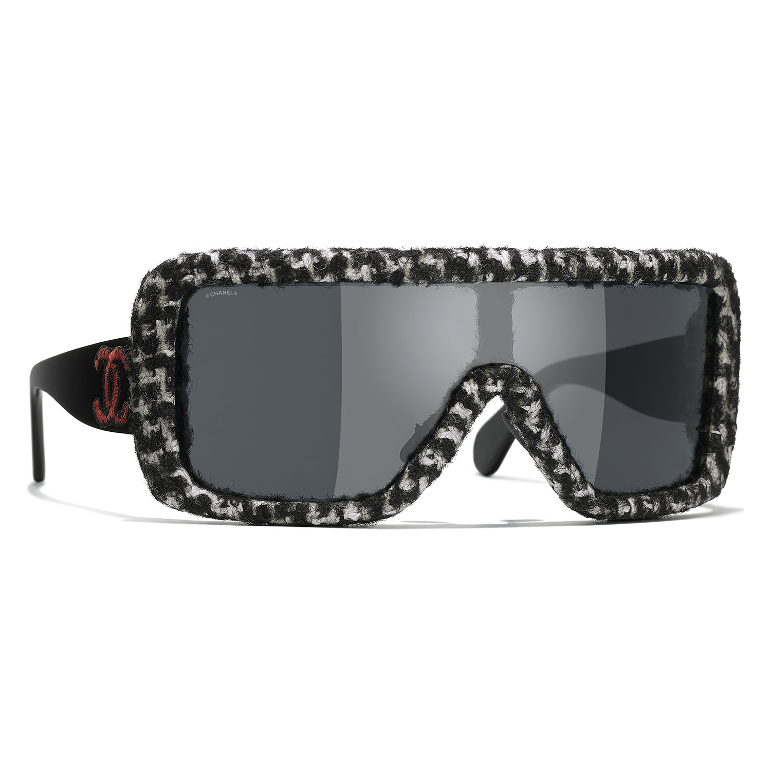 Τέλος, ένα υπερμεγέθες ορθογώνιο στυλ το οποίο λάνσαρε ο πρεσβευτή της CHANEL Pharrell Williams, είναι διακοσμημένο με λεπτές μεταλλικές πλάκες χαραγμένες με ένα μοτίβο που θυμίζει πλεκτό τουίντ ύφασμα.