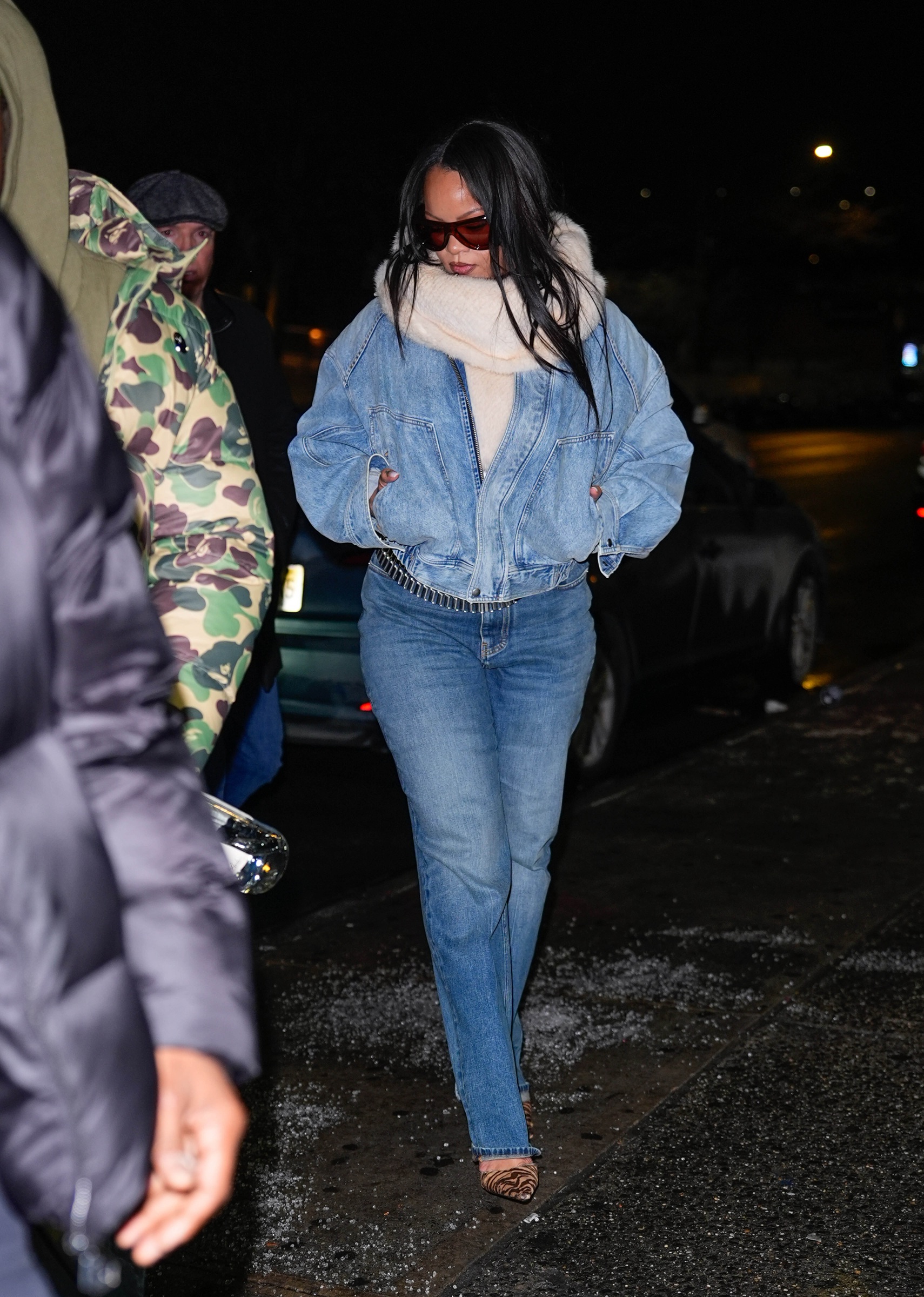 Ένα oversized cream κασκόλ και μεγάλα γυαλιά ηλίου έδωσαν το τελικό, cool-αδιάφορο φινίρισμα στο look της Rihanna.