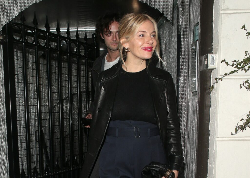 H νέα μαμά Sienna Miller εθεάθη μία από αυτές τις μέρες σε μια βραδινή βόλτα στο Λονδίνο με ένα κομψό σύνολο στους τόνους του μπλε και του μαύρου.