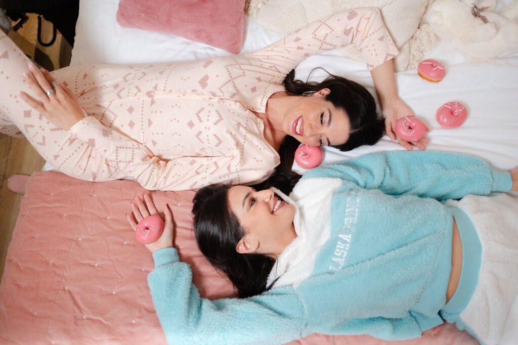 Mε μότο «Εverything is better in your pyjamas», οι Influencers επέλεξαν τα αγαπημένα τους pyjama sets και φωτογραφήθηκαν με props όπως: καρδιά-τούρτα, pink donuts, μπισκότα με pop χείληcake sticks και milk shakes.