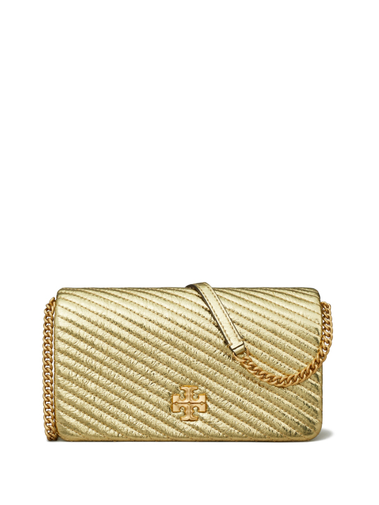 Tσάντα ώμου Kira Moto Quilt Metallic Chain Wallet από δέρμα με ρυθμιζόμενη αλυσίδα ώμου και χρυσή μεταλλική αγκράφα μπροστά, Tory Burch