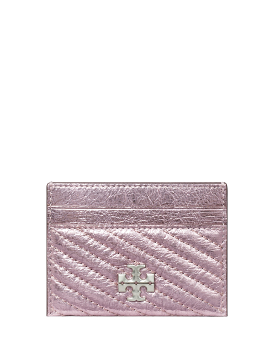 Kira Card Case σε ροζ χρυσή απόχρωση με μεταλλικό διπλό λογότυπο Τ bombé, Tory Burch