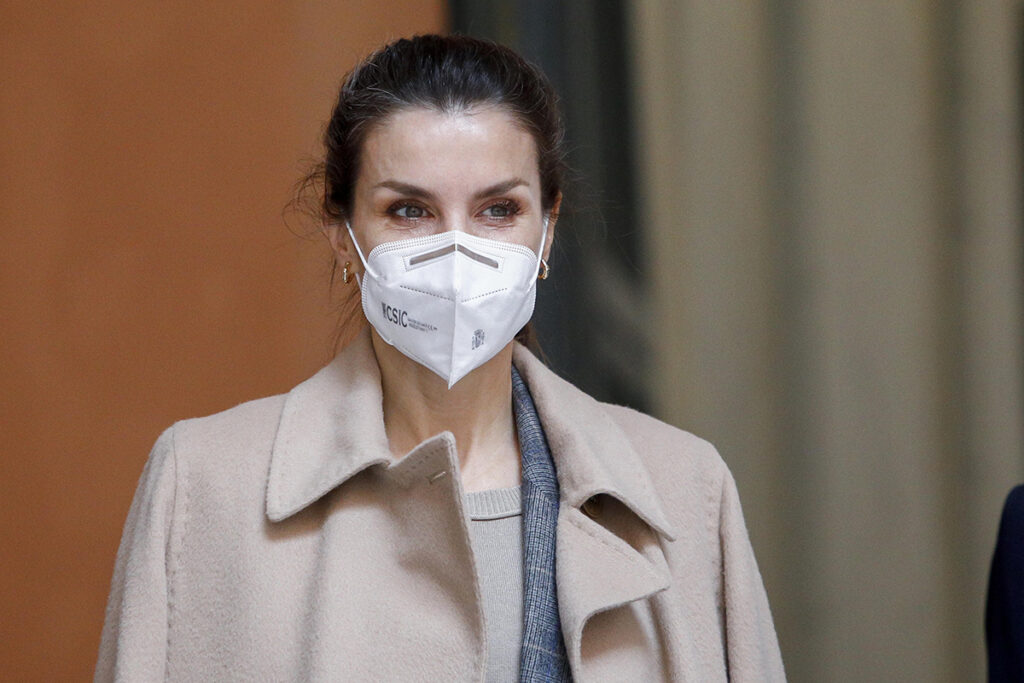 Η βασίλισσα της Ισπανίας έδειχνε αβίαστα κομψή με μια μπλούζα BOSS, την οποία συνδύασε με ένα γκρι παντελόνι Massimo Dutti κι ένα γκρι παλτό από την Carolina Herrera, ριγμένο χαλαρά στους ώμους της.