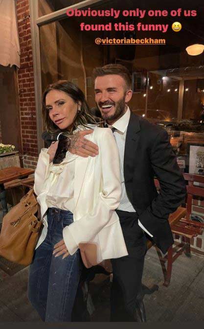 Η Victoria έδειχνε πανέμορφη με ένα λευκό σακάκι πάνω από μια μεταξωτή μπλούζα διακοσμημένη με φιόγκο στο λαιμό, κι ένα κολακευτικό skinny τζιν. Ο David εντωμεταξύ επέλεξε ένα γκρίζo skinny, σε συνδυασμό με ένα μαύρο σακάκι και άσπρο πουκάμισο.