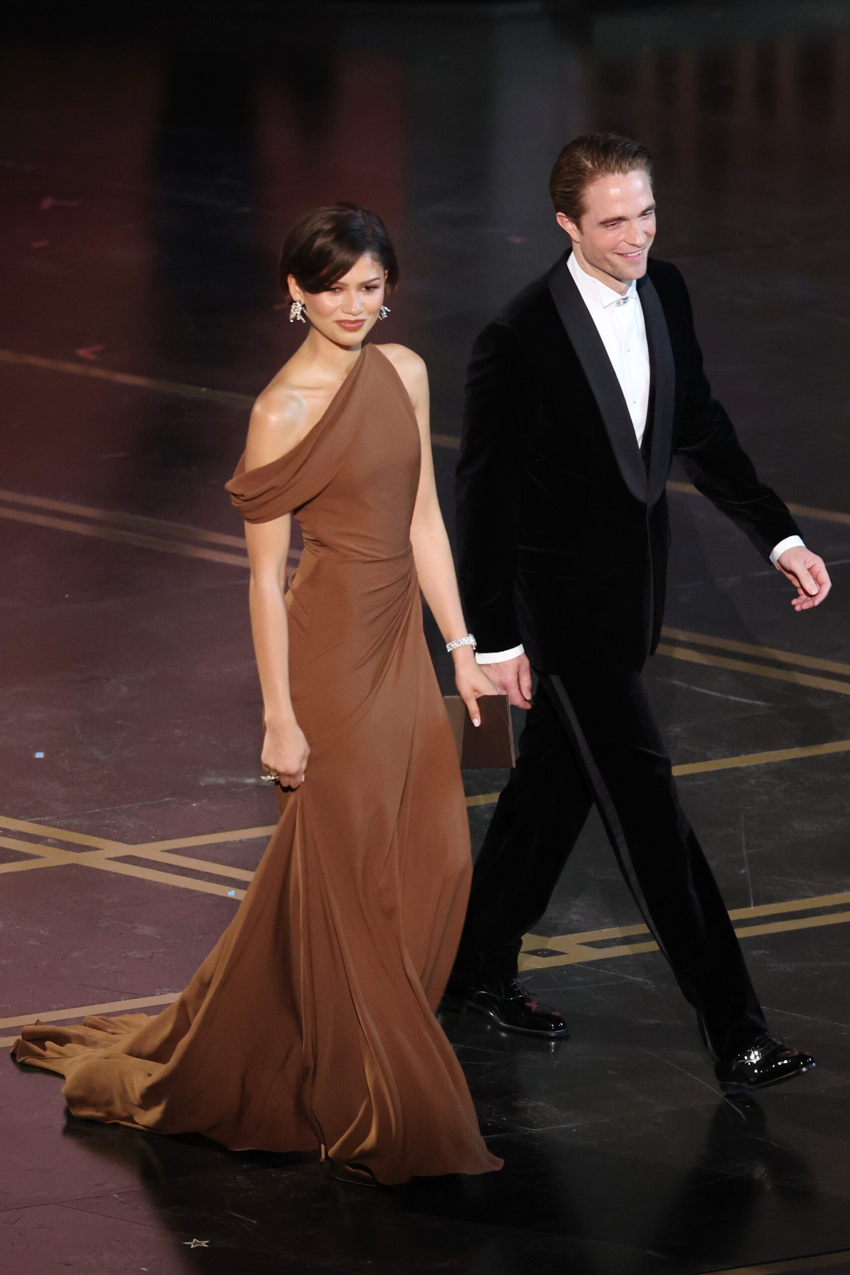 Η Zendaya έκανε μια απρόσμενη εμφάνιση στα 98α Βραβεία Όσκαρ χθες όπου παρουσίασε το βραβείο Σκηνοθεσίας μαζί με τον συμπρωταγωνιστή της στην ταινία The Drama, Robert Pattinson. Για την εμφάνισή της στη σκηνή, η Zendaya επέλεξε μια custom σοκολατί δημιουργία Louis Vuitton, με ασύμμετρο halter ντεκολτέ που έπεφτε κομψά πάνω στο ένα της χέρι, δημιουργώντας ένα μισό off-the-shoulder εφέ. Το σύνολο ολοκλήρωσε με ένα διαμαντένιο ρολόι και μακριά ασημένια σκουλαρίκια.