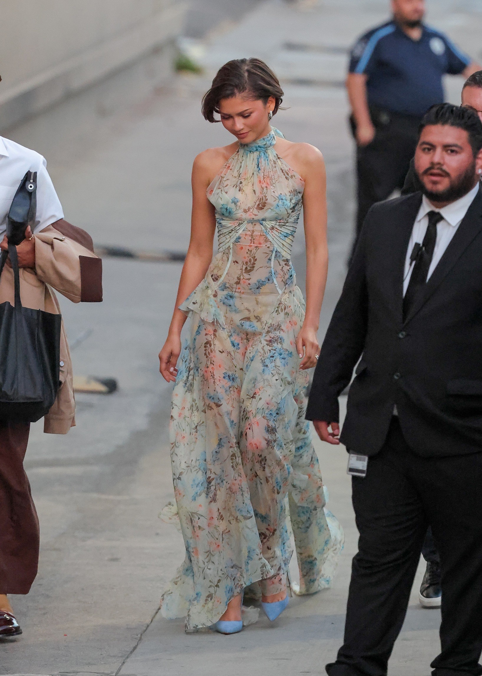 Η Zendaya έφερε ανοιξιάτικο αέρα στην εμφάνισή της το βράδυ της Δευτέρας, επιλέγοντας ένα αμάνικο, floral φόρεμα McQueen για την παρουσία της στο «Jimmy Kimmel Live!» στο Λος Άντζελες.