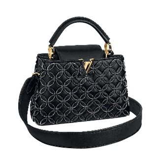 Η Capucines, βασίλισσα ανάμεσα στις φίνες τσάντες του γαλλικού οίκου, που έλαβε το όνομά της από το πρώτο κατάστημα «Louis Vuitton», το οποίο άνοιξε το 1854 στην οδό Neuve-des-Capucines, πρωτοεμφανίστηκε το 2013 προκαλώντας θαυμασμό με την πολυτελή δερμάτινη μονοχρωματική της υφή, ενώ προς έκπληξη πολλών δεν περιελάμβανε την εκδοχή με τον εμβληματικό «μανδύα» με το μονόγραμμα του οίκου που διέθεταν όλες οι άλλες πρωταγωνίστριες των αξεσουάρ. Επτά χρόνια μετά, η κλασική γεωμετρική της σιλουέτα, θηλυκή και κομψή, ανανεώνεται χρωματικά κάθε σεζόν και φλερτάρει με τα διαχρονικά στοιχεία του οίκου, όπως το ανάγλυφο λογότυπο σε χρυσό και ασημί που θυμίζει κόσμημα.