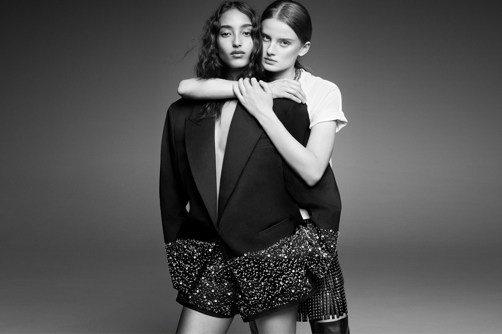 Τα ασπρόμαυρα σύνολα αποκτούν λάμψη με παγιέτες, φιόγκους και κεντήματα. Το κλασικό πουκάμισο σμόκιν είναι διακοσμημένο με κρύσταλλα στις μανσέτες, ενώ το κοστούμι σορτς σμόκιν είναι κεντημένο με πλούσιες λεπτομέρειες. Οι ανάγλυφες υφές κυριαρχούν στη συλλογή. Μια νέα ύφανση με κρόσσια που θυμίζει την υφή γούνας διακοσμεί το σετ που αποτελείται από τοπ και παντελόνι. Οι βραδινές τσάντες είναι διακοσμημένες με την ίδια υφή και με κρύσταλλα που προσθέτουν κίνηση– ιδανικές για χορό.