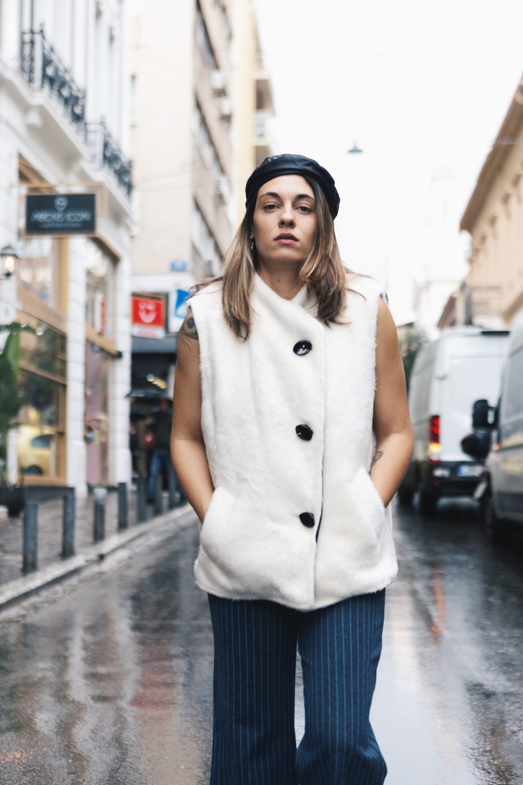Στο πιο πρόσφατο project που ονόμασε «WARMTH», η Άσπα βρήκε αχρησιμοποίητες ακρυλικές κουβέρτες από τη δεκαετία του 1980 – υλικό που είχε παραχθεί σε ένα ελληνικό εργοστάσιο πλέον κλειστό. Μετατρέποντάς τες σε one-of-a-kind γιλέκα, έδωσε νέα ζωή σε κάτι που φαινόταν να έχει πάει χαμένο, δημιουργώντας μια γέφυρα ανάμεσα σε μια εποχή που έχει παρέλθει και στο σήμερα. Vintage κουμπιά, μερικά από τα οποία ξεπερνούν τα 100 χρόνια ζωής, προσθέτουν χαρακτήρα και ιστορία. Έτσι, το παλιό και η αξία του βρίσκουν τη θέση τους σε κάθε ράψιμο και λεπτομέρεια, μεταμορφώνοντας κάτι ξεχασμένο σε ένα μοναδικό κομμάτι που κουβαλά μνήμη και αισθητική. Τα κομμάτια της capsule συλλογής γεννήθηκαν μέσα από ένα καλλιτεχνικό ξέσπασμα ωστόσο δεν στερούνται άνεσης και πρακτικότητας. Μπορούν να συνοδεύσουν την καθημερινότητά μας με φυσικότητα και ζεστασιά -όπως άλλωστε μαρτυρά και το όνομα της κολεξιον.