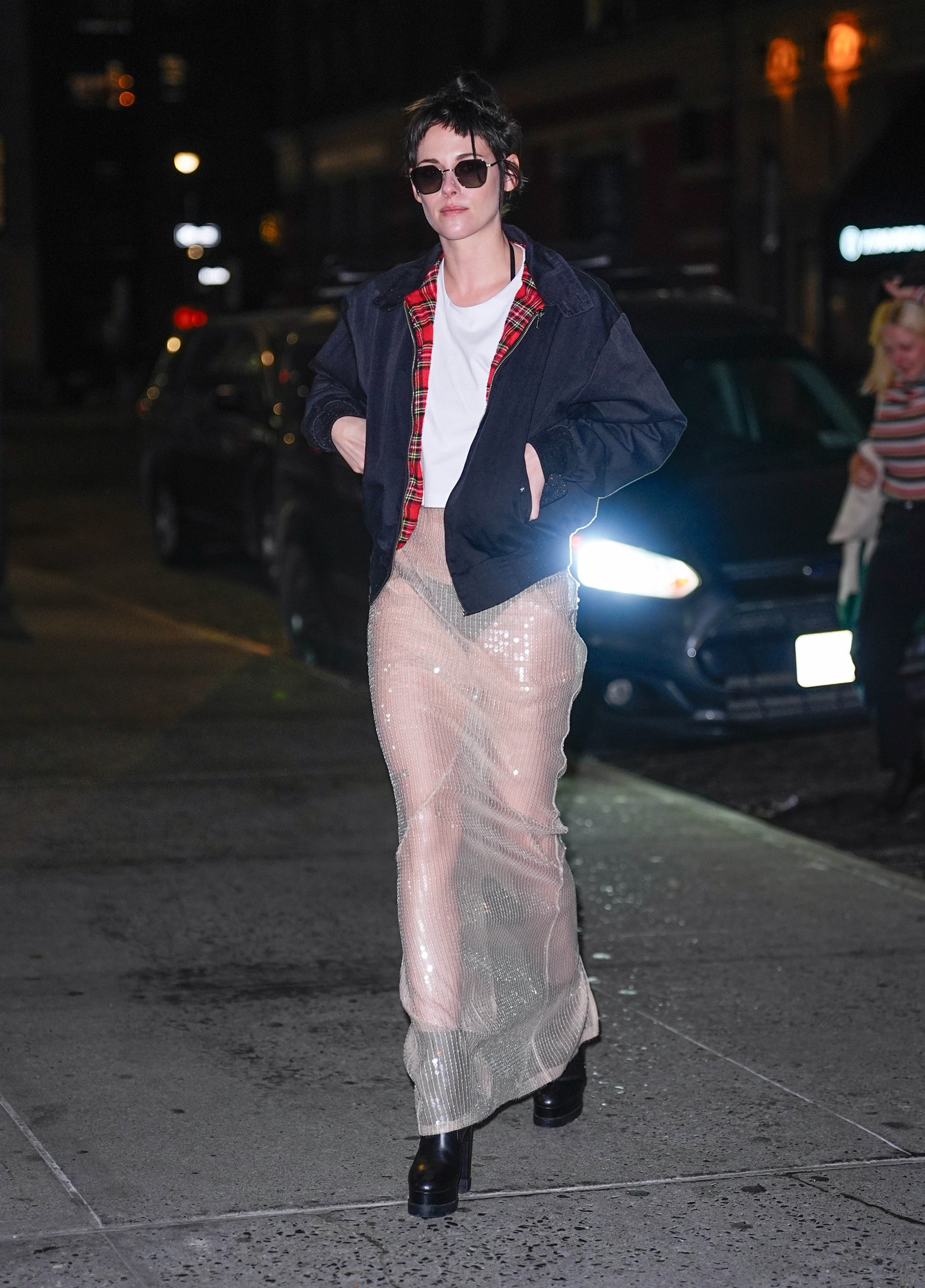 Η Kristen Stewart πραγματοποίησε την πρώτη της μεγάλη εμφάνιση για το νέο έτος με μια απολύτως διάφανη φούστα, την οποία συνδύασε με μαύρο εσώρουχο για μια σέξι πινελιά και μερικά πιο low-key κομμάτια για αντίθεση.