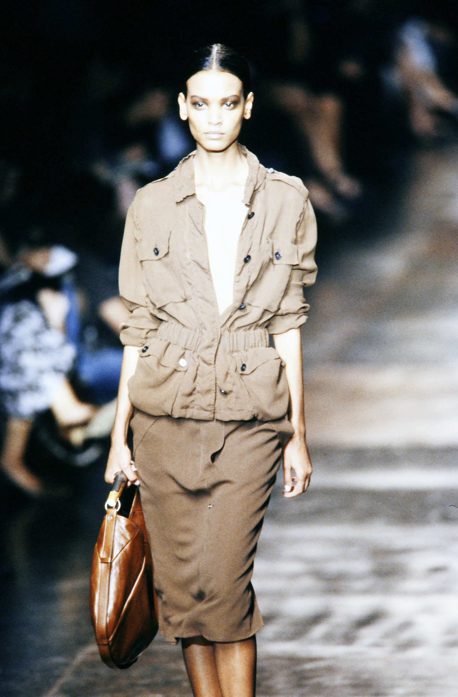 To μοντέλο Liya Kebede με την Mombasa bag στο σόου Saint Laurent Aνοιξη 2002 / Getty Images