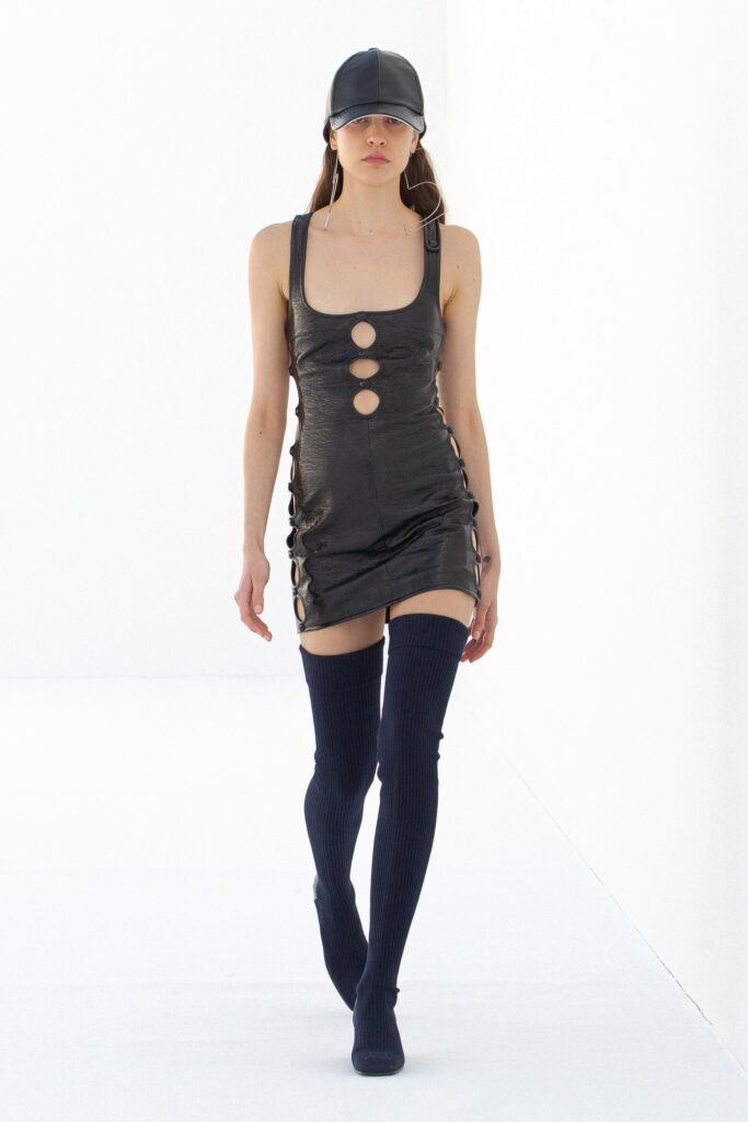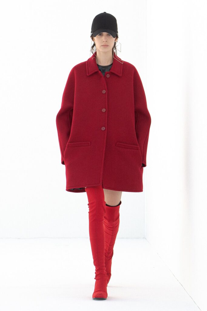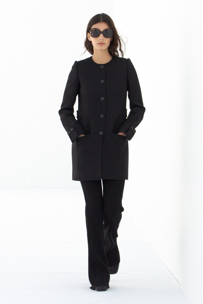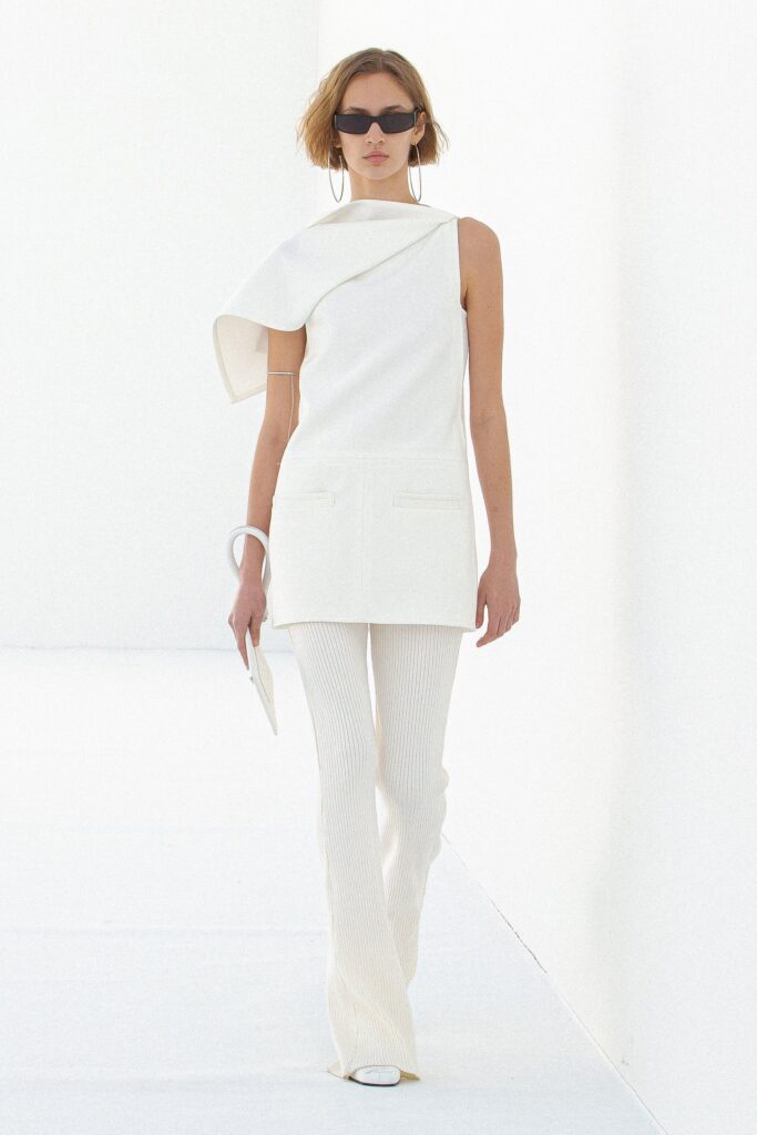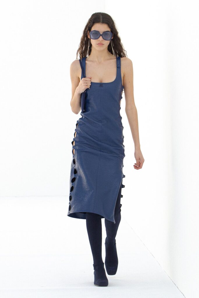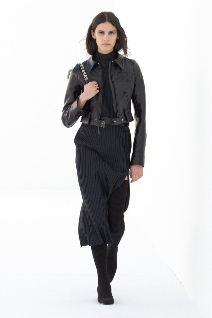 Για το ντεμπούτο του, ο Di Felice ανέλαβε την πρόκληση να προσπαθήσει να αναβιώσει την ουσία του Courrèges συγχωνεύοντας το ιστορικό αρχείο του οίκου με μια γυναίκα που γεννήθηκε πολύ μετά την ακμή του. Οι κλασικές go-go boots του εξακολουθούν να υπάρχουν στη συλλογή Φθινόπωρο / Χειμώνας 2021 και φοριούνται με μακριά φορέματα και κοντές φούστες, σακάκια με δομημένη σιλουέτα και φορέματα με cutuouts. Η χρήση πλαστικού – η οποία ήταν επιτυχής για τoν Courrèges τη δεκαετία του 1960 και αντ ‘αυτού ο οίκος δημιούργησε ένα νέο υλικό σχεδόν εξ ολοκλήρου φυτικής προέλευσης. Ένας έξυπνος τρόπος να κάνει restart για τη νέα εποχή του.