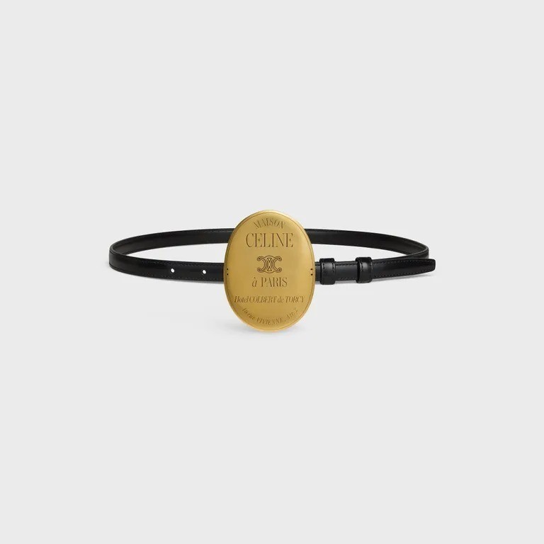 Δεν άργησε να γίνει αγαπημένη των fashion insiders. Με τη μεγάλη, τύπου μενταγιόν αγκράφα και το logo της Celine, η ζώνη κάνει μια διακριτική αναφορά στα παλιά γραφεία του οίκου, το Hôtel Colbert de Torcy.