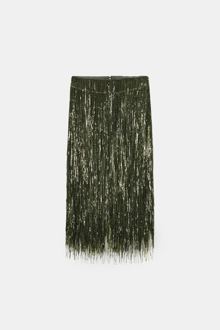 Η Gomez μοιράστηκε το επόμενο πρωί στο Instagram φωτογραφίες δίπλα στο τζάκι, αποκαλύπτοντας τις αντιθετικές εμφανίσεις τους. Όπως σχεδόν πάντα στις κοινές τους εξόδους, η Selena ήταν λίγο πιο επίσημα ντυμένη από τον Benny ξεκινώντας με μία μαύρη μπλούζα με βαθύ ντεκολτέ. Την έβαλε μέσα σε μία ψηλόμεση midi φούστα από την premium σειρά της Zara, τη ZW Collection. Η σατέν, slip γραμμή ήταν διακοσμημένη με σειρές από λαμπερά, olive-green κρόσσια με παγιέτες, που κάλυπταν όλη την επιφάνεια μέχρι τη γάμπα. Το κομμάτι έχει πλέον εξαντληθεί, όχι απαραίτητα επειδή το φόρεσε η Gomez, αλλά μάλλον επειδή είχε τιμή των μόλις 20 ευρώ με την έκπτωση.