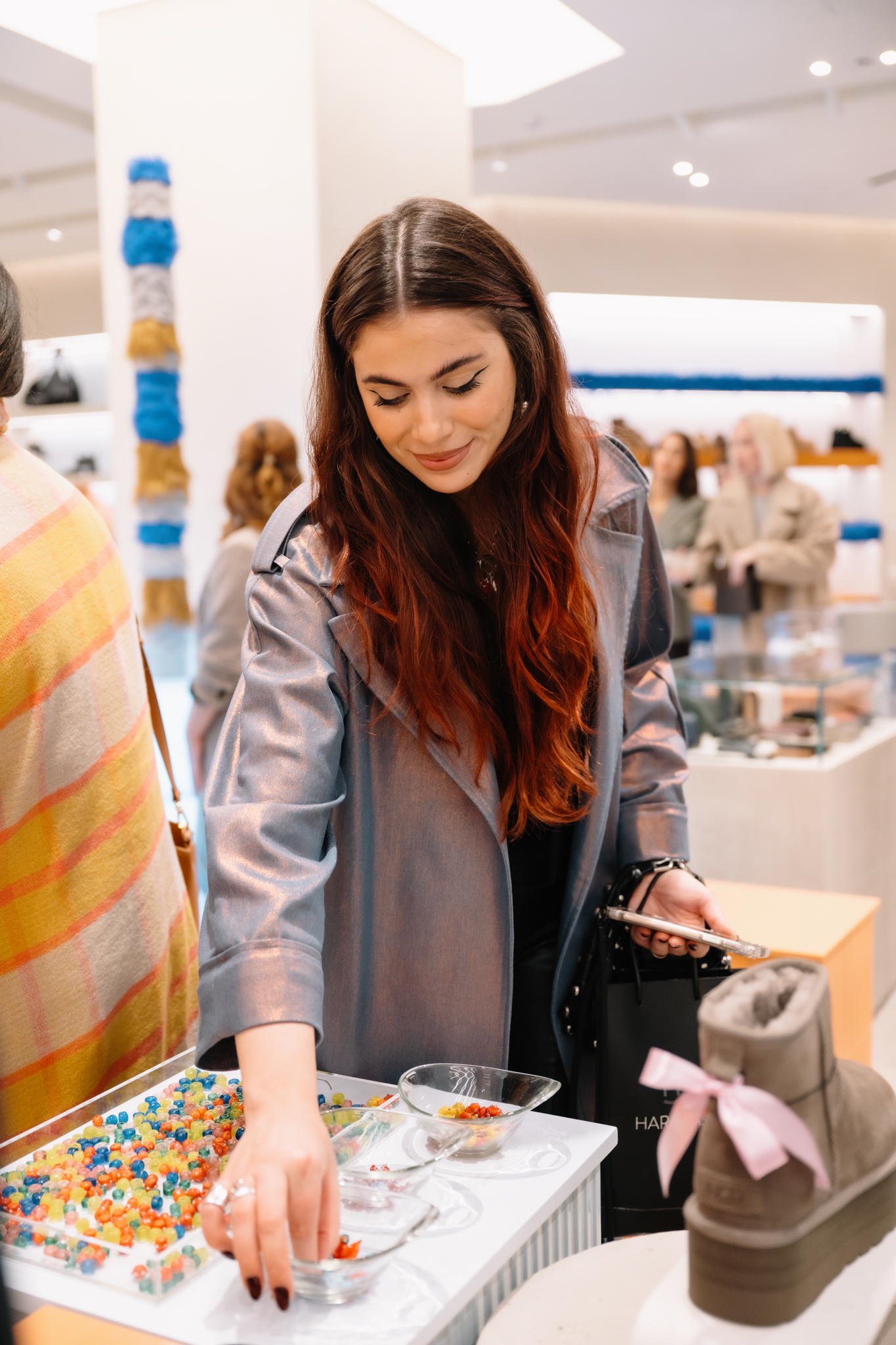 Οι καλεσμένοι είχαν την ευκαιρία να ζήσουν τη δημιουργικότητα στο έπακρο, κάνοντας custom τις αγαπημένες τους UGG boots. Στο Engraving Station που στήθηκε στον χώρο, είχαν τη δυνατότητα να χαράξουν σχέδια, σύμβολα, ακόμη και τα αρχικά των ονομάτων τους, ενώ στο Charms Station είχαν τη δυνατότητα να τις διακοσμήσουν με πολύχρωμες χάντρες και κορδέλες, κάνοντας τις μπότες τους one of a kind! Παράλληλα μπορούσαν να αποκτήσουν τις δικές τους custom κάλτσες με σχέδιο της επιλογής τους.