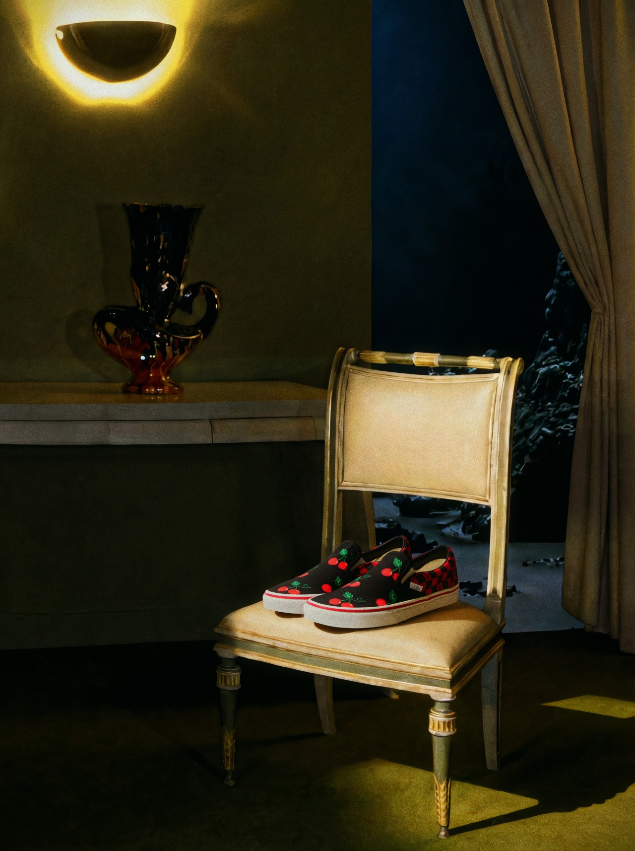 Η νέα συλλογή περιλαμβάνει έξι unisex εκδοχές, με διαφορετικά μοτίβα και co-branded εσωτερικούς πάτους. Ανάμεσα στα σχέδια ξεχωρίζουν τα VLogo Checkerboard σε μαύρο με κόκκινο και μαύρο με ροζ, το VLogo Checkerboard με μεγάλα πουά, καθώς και το μοτίβο Tropical Leaves. Στη συλλογή επιστρέφει και το playful Valentino Le Chat de la Maison, ενώ για πρώτη φορά κάνει την εμφάνισή του το μοτίβο Cherryfic, προσθέτοντας μια πιο παιχνιδιάρικη διάσταση στη συνεργασία.