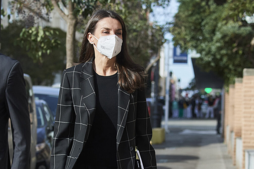 Η βασίλισσα Λετίσια επέλεξε τα δικά της σε ένα ελαφρώς μυτερό shape δακοσμημένα με έναν φιόγκο και τα φόρεσε σε συνδυασμό με ένα μαύρο τοπ κι ένα pencil παντελόνι. Συμπλήρωσε την εμφάνιση με ένα κομψό καρό σακάκι.