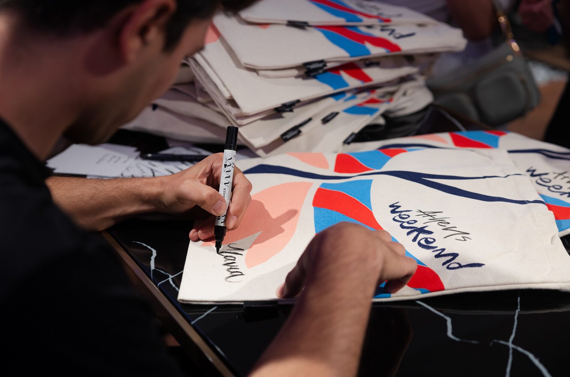 Στα happenings των λαμπερών εγκαινίων ανήκουν το personalization από τον καλλιγράφο Akis Akila σε συλλεκτικές Weekend Max Mara Athens shopper bags, καθώς και οι μουσικές επιλογές από την Dj Xenia Ghali.