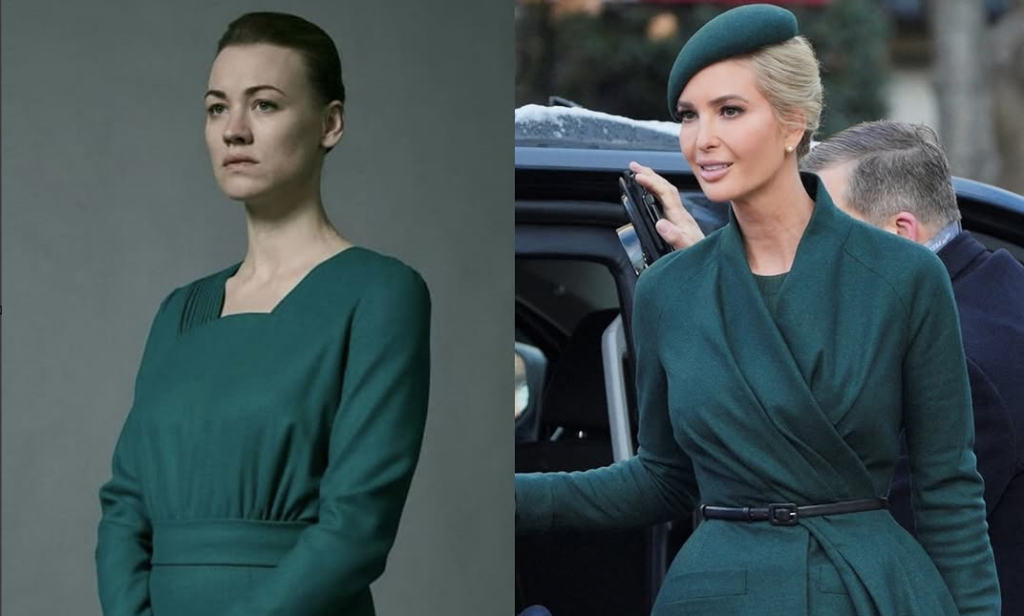 Η Ivanka Trump παρευρέθηκε στη δεύτερη προεδρική ορκωμοσία του πατέρα της, Donald Trump, στις 20 Ιανουαρίου ντυμένη με ένα σκούρο πράσινο σύνολο και ασορτί καπέλο σε συνδυασμό με μαύρο καλσόν και παπούτσια, μια εμφάνιση που παρέπεμπε ενδυματολογικά στην τηλεοπτική σειρά The Handmaid’s Tale, με πολλούς να εικάζουν ότι δεν θα μπορούσε να ήταν σύμπτωση.