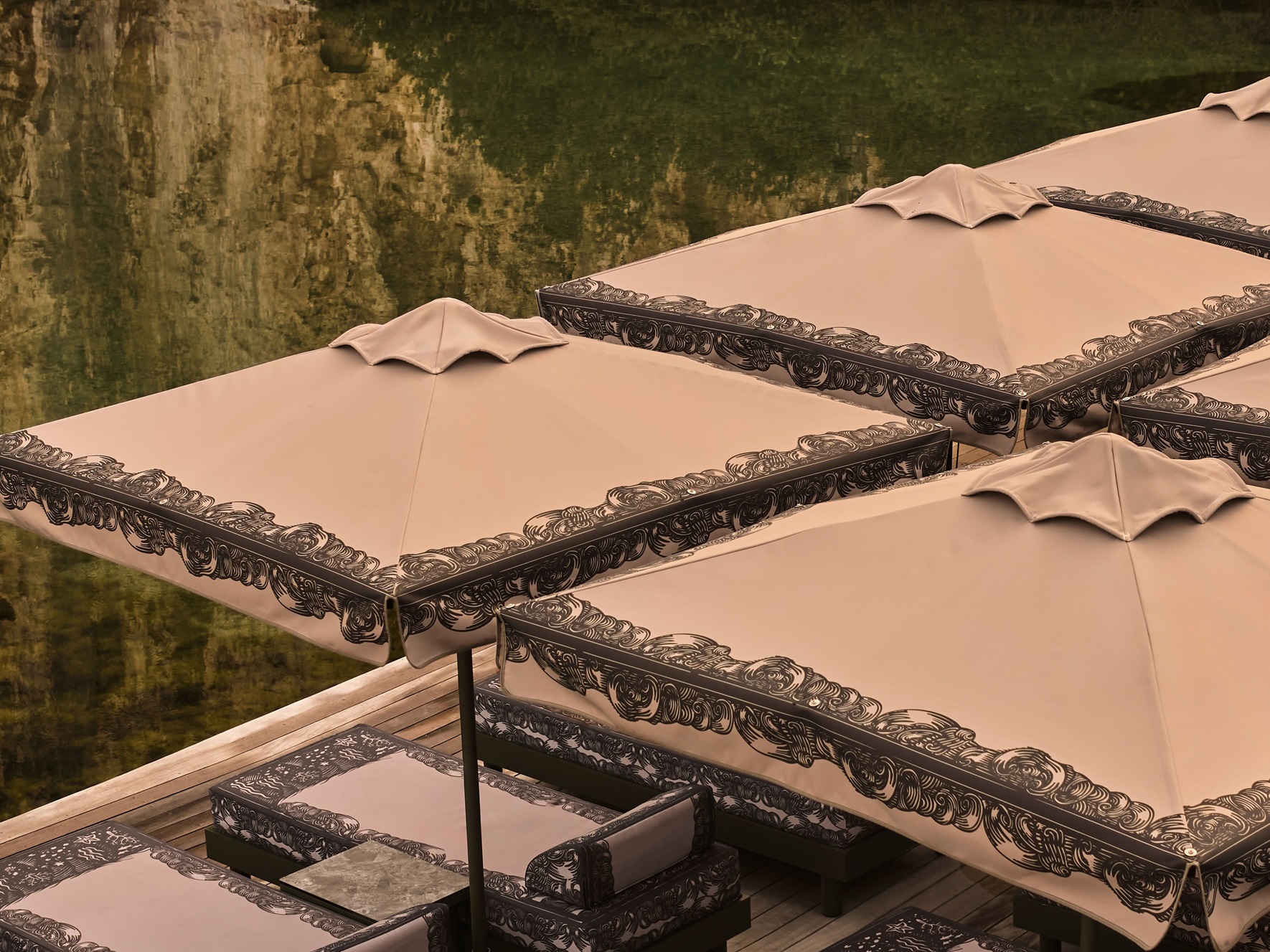 Σε συνεργασία με τον ταλαντούχο χαράκτη Πανταζή Τσέλιο, αποτύπωσαν το τοπίο σε ξυλογραφία με βυζαντινές επιρροές. Αυτά τα μοτίβα μεταφέρθηκαν σε αντικείμενα όπως ξαπλώστρες, μαξιλάρια, πετσέτες και ομπρέλες, που διακοσμούν τον χώρο γύρω από τη Λίμνη αλλά και το εστιατόριο Abra Ovata.