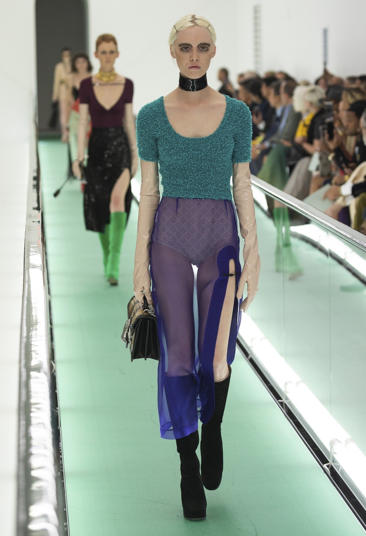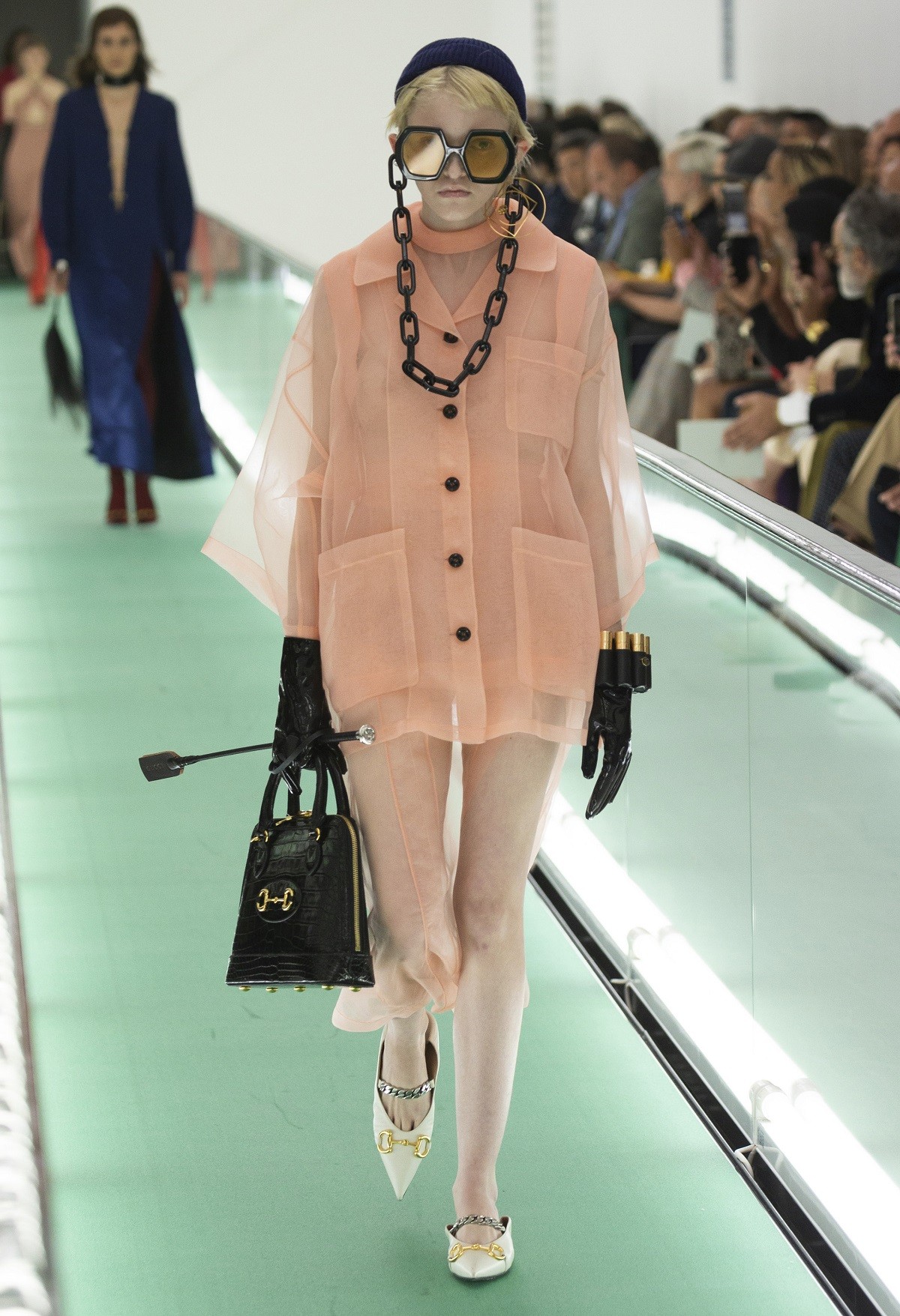 Το σόου Gucci για την Άνοιξη του 2020 πραγματοποιήθηκε σε μια εντελώς λευκή αίθουσα με έναν κυλιόμενο διάδρομο αντί του παραδοσιακού και ξεκίνησε με το ντεμπούτο 60 λευκών εμφανίσεων οι οποίες αντιπροσώπευαν σύμφωνα με τον ίδιο τον οίκο το “πώς μέσω της μόδας, ασκείται δύναμη στη ζωή για να εξαλειφθεί η αυτο-έκφραση”.