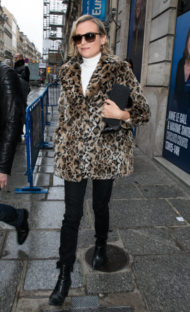 Τι μπορούμε να πούμε για το στυλ της Diane Kruger; Είτε φοράει τζιν και ένα T-shirt  είτε μια δημιουργία Υψηλής Ραπτικής σε ένα κόκκινο χαλί, πάντα φαίνεται ενδυματολογικά αλάνθαστη και η πιο πρόσφατη εμφάνιση της δεν αποτελεί εξαίρεση. Η ηθοποιός αυτή τη φορά επέλεξε ένα faux-fur παλτό με λεοπάρ μοτίβο που ήταν τόσο κομψό όσο και άνετο. Συνδυασμένο τέλεια με ένα εκρού τοπ με ζιβάγκο, μαύρο τζιν και μποτάκια με το look της επιβεβαιώνει για ακόμα μια φορά τη φήμη του απόλυτα κομψού και διαχρονικού μοτίβου.