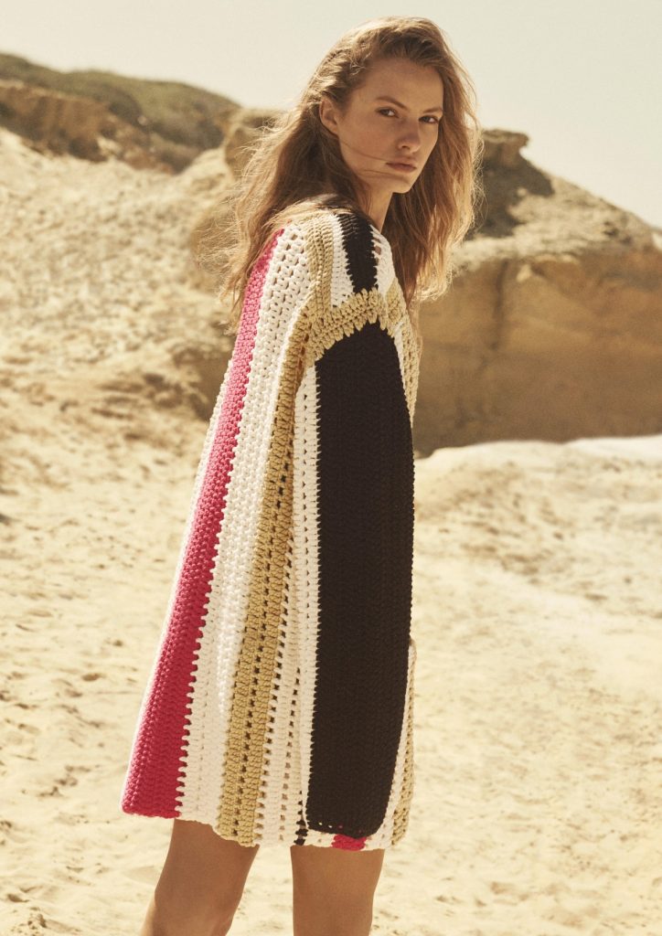 Οι απτές στρώσεις και οι ψυχεδελικές πινελιές χρώματος δημιουργούν μια νέα, ξέγνοιαστη διάθεση. Τα βασικά κομμάτια περιλαμβάνουν το αέρινο, μακρύ φόρεμα σε ροζηλεκτρίκαπόχρωση, το μπεζ κοντό σακάκι με τονισμένους ώμους και τελειώματα χωρίς στρίφωμα και την ασορτί παντελόνα, το ριγέ μοντέρνο, κρεμ βαμβακερό τζιν, τη ζακέτα με χοντρή πλέξη και ροζ, κρεμ και μπεζ ρίγες, και τα κρεμ μποτάκια με πλατφόρμα.