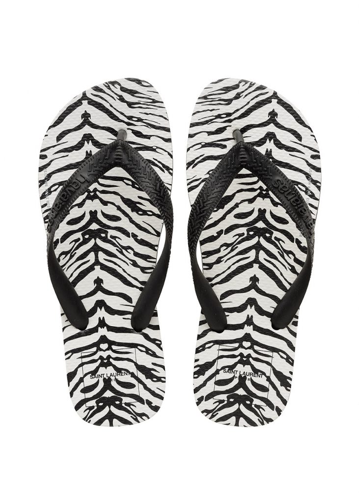 Οι περιορισμένης έκδοσης σαγιονάρες έρχονται σε ασπρόμαυρο με μοτίβο ζέβρας, κοστίζουν 45 ευρώ και τώρα διαθέσιμες για προπαραγγελία στη σελίδα του Saint Laurent Rive Droite, αποδεικνύοντας ότι η τάση των εύχρηστων παπουτσιών έχει φτάσει επίσημα στο υψηλότερο επίπεδο της βιομηχανίας μόδας. Και παρόλο που τα σανδάλια από καουτσούκ αποκλίνουν αρκετά από τα τυπικά είδη του Saint Laurent, τα συγκεκριμένα δεν μοιάζουν παράταιρα.