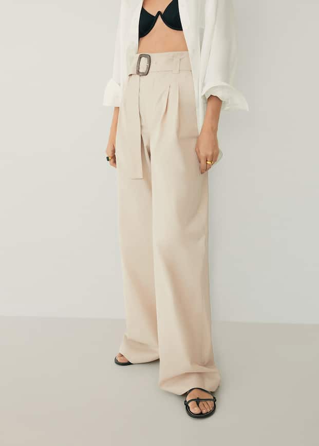 Bαμβακερό παντελόνι με ζώνη, Mango