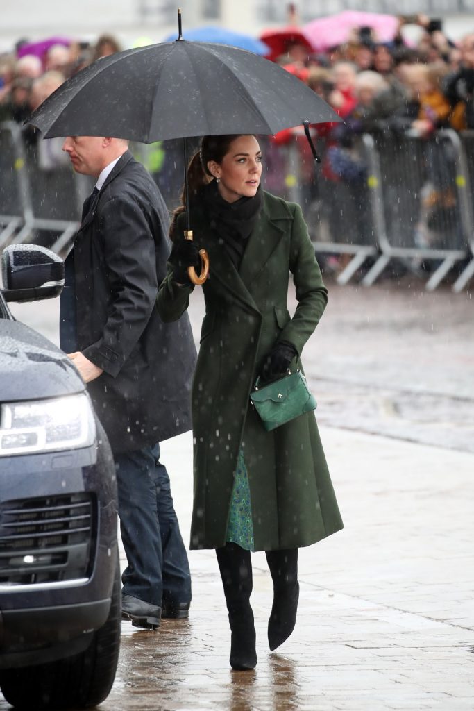 Η Κειτ Μίντλετον φώτισε μια πολύ μουντή μέρα σήμερα στο Μπλάκπουλ μαζί με τον σύζυγό της Πρίγκιπα Γουίλιαμ κι εμείς λατρέψαμε την τελευταία της εμφάνιση. Η Δούκισσα του Κέιμπριτζ φορούσε ένα σκούρο πράσινο παλτό από την Sportmax, η οποία κάλυπτε το Michael Kors φόρεμά της, μαύρα γάντια, μαύρο κασκόλ και την πιο χαριτωμένη πράσινη τσάντα από το brand Manu Atelier.