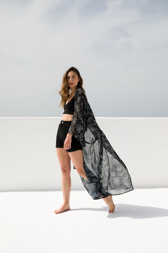 H Δάφνη Αλεξιάδου κάνει την πρώτη της βουτιά στα γαλανά νερά της ελληνικής καλοκαιρινής μόδας με μία limited collection beachwear, καφτάνια, παρεό και σετ σε χρωματιστά και χαρούμενα prints που σχεδιάζονται στο χέρι.
