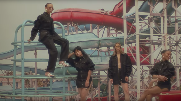 Ολα τα looks είναι μονόχρωμα σε λευκό, μαύρο ή denim και είναι συνδυασμένα με sporty γυαλιά ηλίου και πέδιλα.