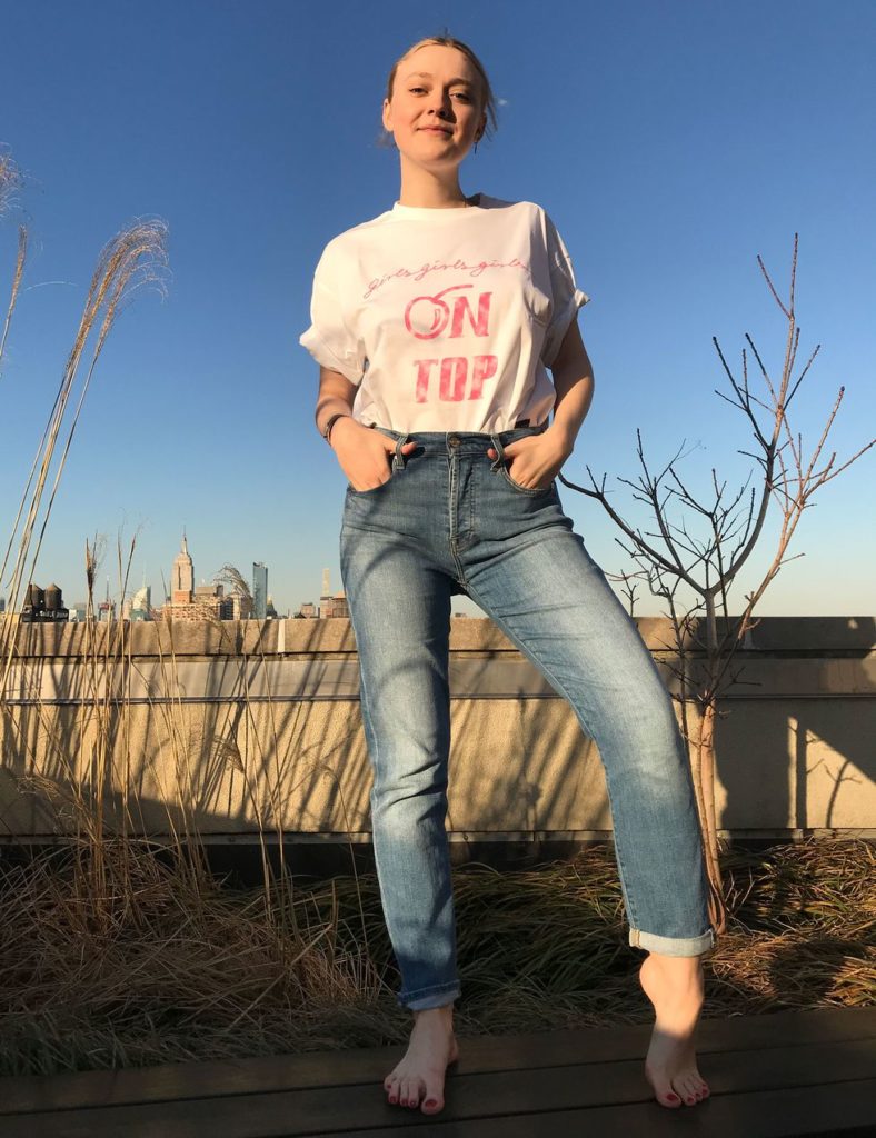 Η Dakota Fanning με Ganni T-shirt