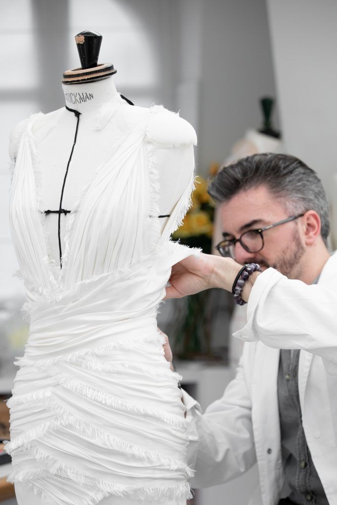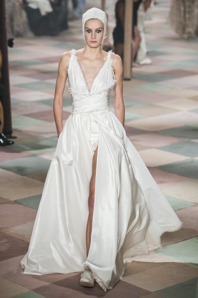 Φορέθηκε από ένα μοντέλο στις επιδείξεις Υψηλής Ραπτικής στο Παρίσι, και από εκεί το είδαμε στη συνέχεια φορεμένο από την ίδια την Lady Gaga. Η τραγουδίστρια και ηθοποιός το συνδύασε με ένα ζευγάρι απλές λευκές γόβες και μεγάλα, χρυσά κοσμήματα. Ολοκλήρωσε την εμφάνισή της εντυπωσιακά, με χείλη και νύχια στο χρώμα του βατόμουρου.