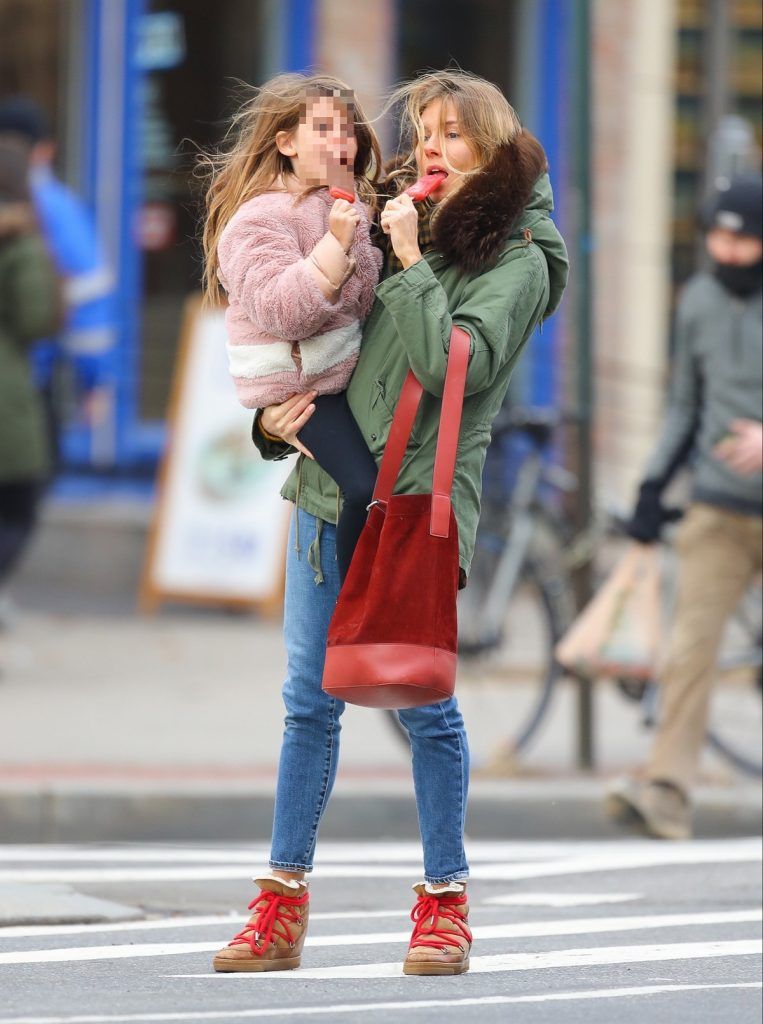 Εβαλε στην άκρη τις αγαπημένες της UGGs και τις αντικατέστησε με ένα ζευγάρι μποτάκια Isabel Marant. Ολοκλήρωσε το look με μια κόκκινη, σουέντ shoulder bag που ταίριαζε απόλυτα με τα κόκκινα κορδόνια των παπουτσιών.