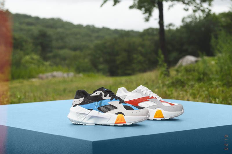 Το Aztrek Double, που αποκαλύπτεται για πρώτη φορά μέσα από αυτή τη συνεργασία, ανανεώνει το αρχικό παπούτσι Aztrek με μια εξαιρετικά χοντρή ενδιάμεση σόλα και δύο επιλογές σε κορδόνια.