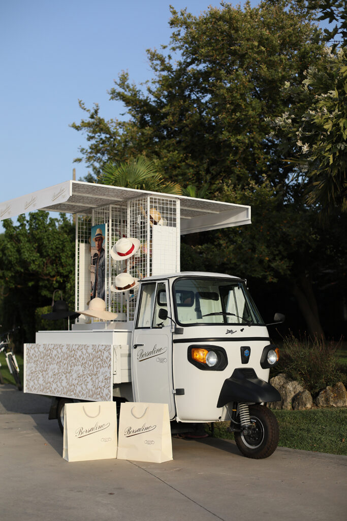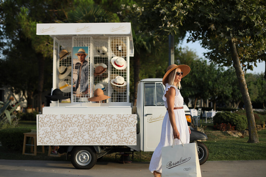 Η τελευταία αυτή πρωτοβουλία της Borsalino αποτελεί τη νεότερη προσθήκη της, στο πλαίσιο της διαρκούς και διεθνής στρατηγικής ανάπτυξης της εταιρείας, προκειμένου να εδραιώσει την παρουσία της στις πιο περιζήτητες τοποθεσίες που επιλέγει ο ελίτ τουρισμός. Tο Pop-Up store, το οποίο βρίσκεται πάνω στο διάσημο τρίτροχο μοντέλο της Piaggio που κυκλοφόρησε το 1948, προσφέρει μια παιχνιδιάρικη εικόνα εμπνευσμένη από τα στοιχεία Τέχνης και Χειροτεχνίας, που αφηγούνται τη νέα αντίληψη του οίκου γύρω από την ομορφιά και την απόλυτη ισορροπία μεταξύ του παραδοσιακού και του μοντέρνου στοιχείου.